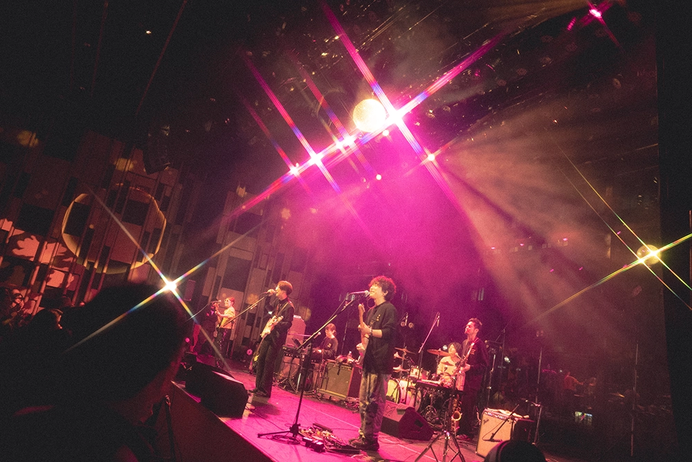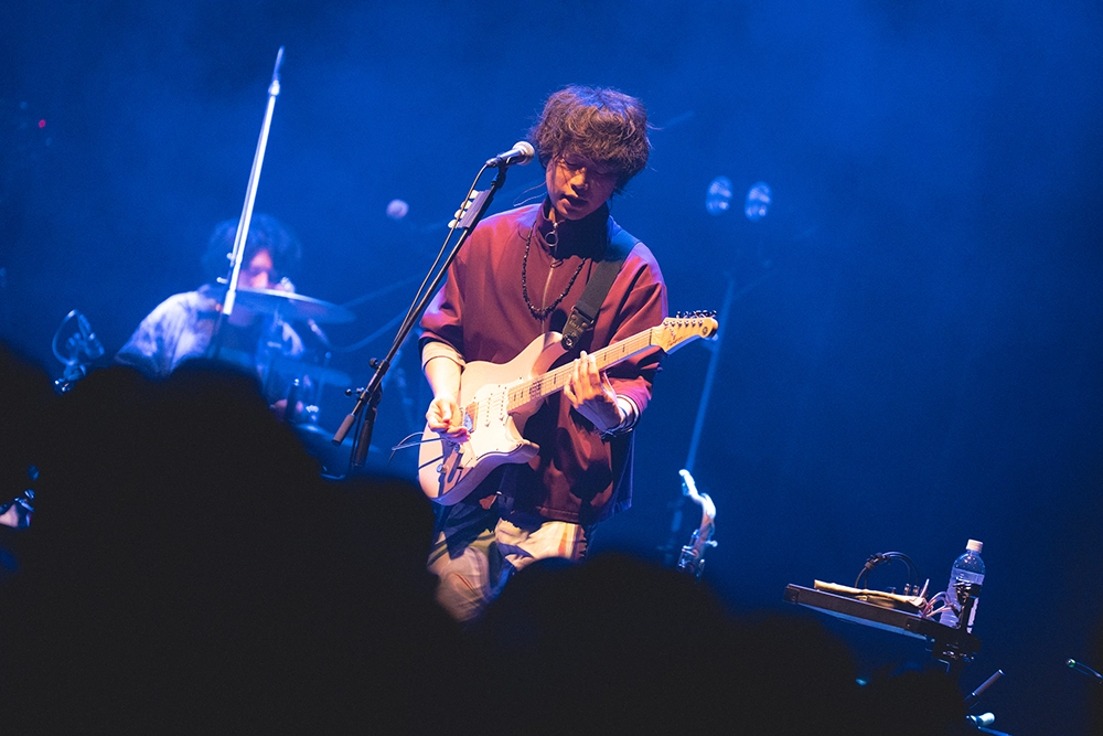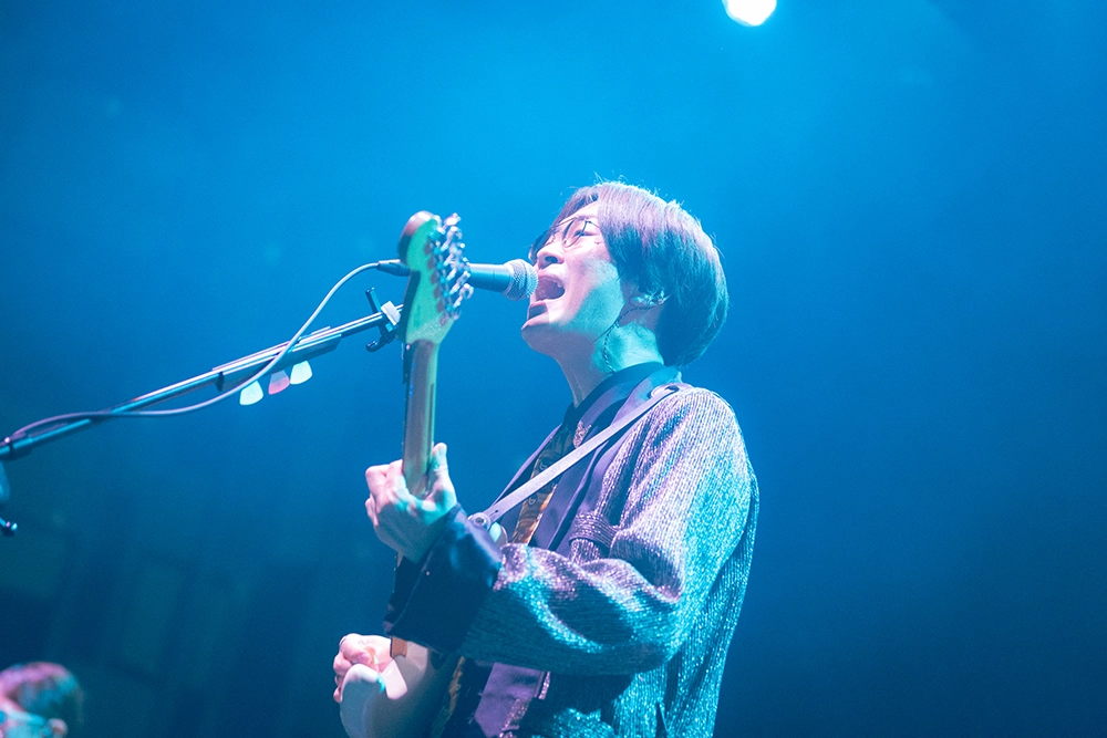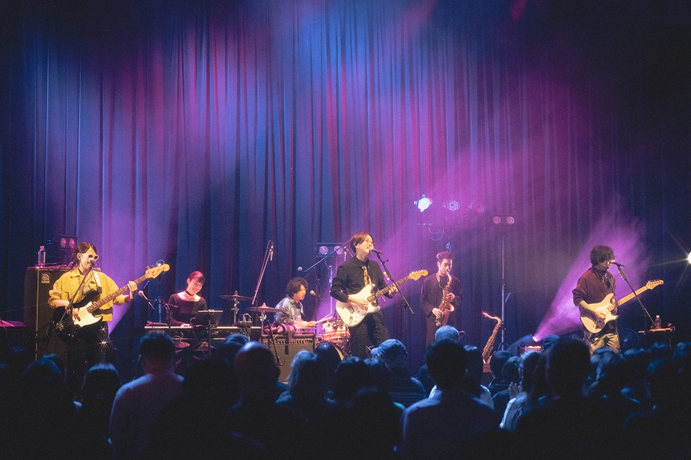 BGMはエモーションズ「Love Vibes」、客席は総立ち手拍子、1曲目はニューアルバムから林哲司プロデュース曲「SYMPATHY」。サックスと鍵盤を加えた6人編成のサウンドはスムースかつアクティヴ、自慢のコーラスワークも心地よく、アッパーな「ユニーク」からソフト&メロウな「Highway Coconuts」へ、緩急つけたドライヴィングで観客を引き込む手腕は鮮やか。吉田卓史(Gt)のギターは品よくセンスよく、見た目は派手だがプレーはいぶし銀の延本文音(Ba)と、つのけん(Dr)の堅実リズム隊が歌を支える。倉品翔(Vo&Gt&Key)のボーカルはマイク乗りがいいと言うか、ソフトなのにぐっと前に出て聴こえる。ハートにまっすぐ響く音が鳴っている。