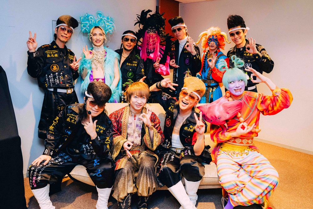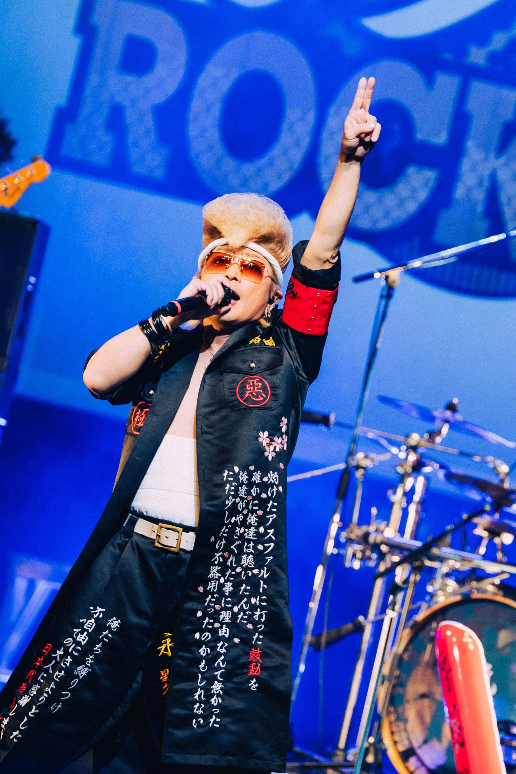 さらに、Psycho le Cémuとはデビュー前からの中で影響を受けたと語りつつ、彼らが『氣志團万博』を主催している経験から、その大変さを理解したうえで応援したいと語る綾小路翔からは、これぞ漢気とでも呼びたい生き様が伝わってくるようだった。そんな真っ直ぐな姿勢は、自分たちの表現にも体現され、隅々まで徹底されたプロフェッショナルなステージになっているのだろう。それはパフォーマンスだけでなく、音楽、ロックバンドとしての演奏においてでもだ。楽器陣のサウンドに耳を傾ければ、その研ぎ澄まされたカッコよさを堪能できるのだから。40分よりももっとずっと楽しませてもらったような、満足度の高いステージだった。