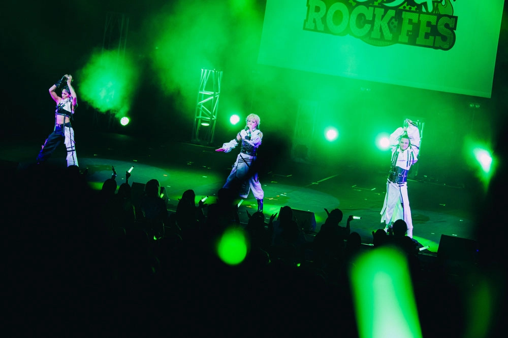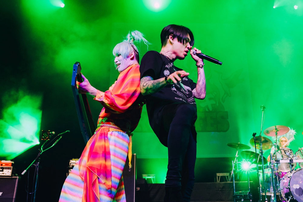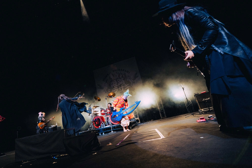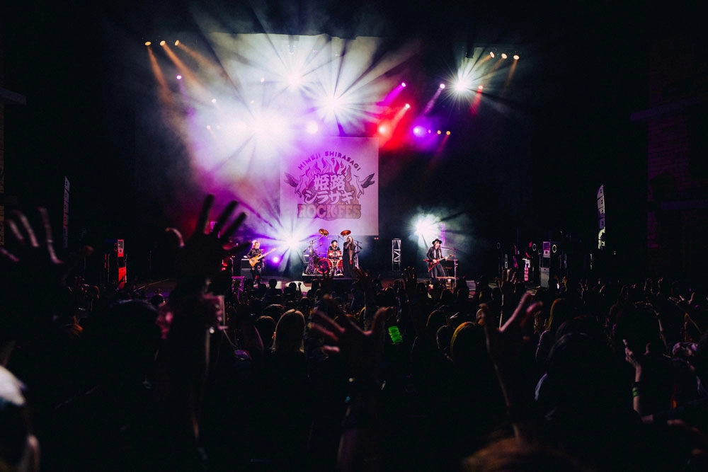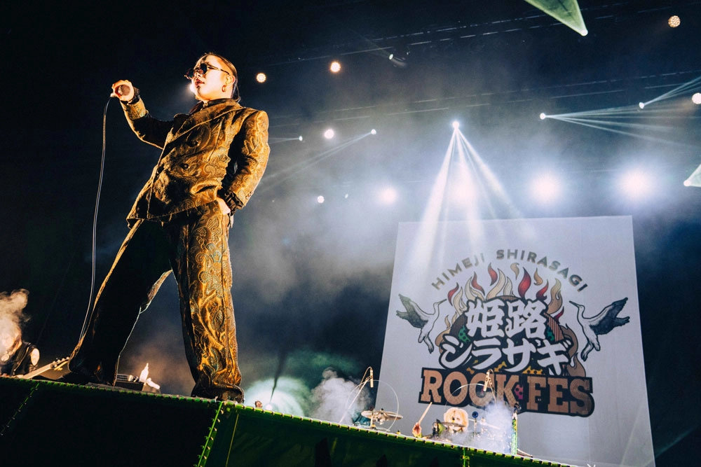 「the WORLD」「アルミナ」「レゾンデートル」と、アニメのタイアップで広く知られた曲を立て続けに投下。これで盛り上がらないはずはない。数々のヒット曲を持っているのは、もちろん第一線で活躍してきた証だが、それ以上に演奏やステージング、見せ方など、どこをとっても完成度が高く、その実力の確かさを感じた。「惰性ブギー」では、特攻服姿のLida(Psycho le Cému)が参加し、お立ち台で咲人と並んでプレイする貴重な姿も。実は、姫路でのライヴは長いバンド活動のなかでも初めてだとか。こういったことが、姫路でフェスを開催する意義のひとつになるに違いない。