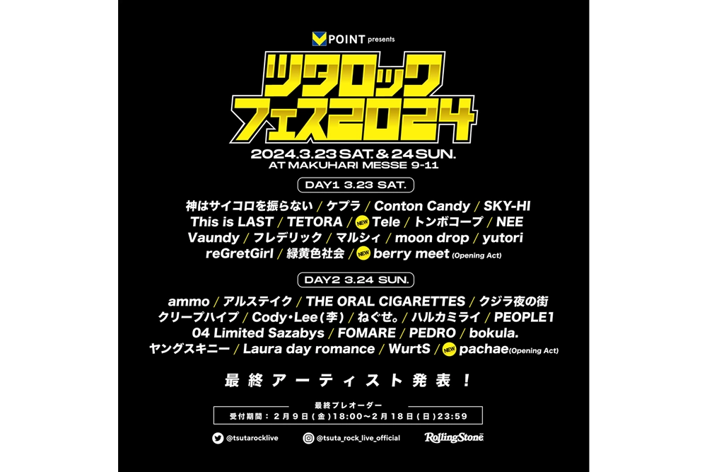 ツタロックフェス2024、最終出演アーティストTele、berry meet 、pachaeの3組を発表!最終プレオーダー受付開始