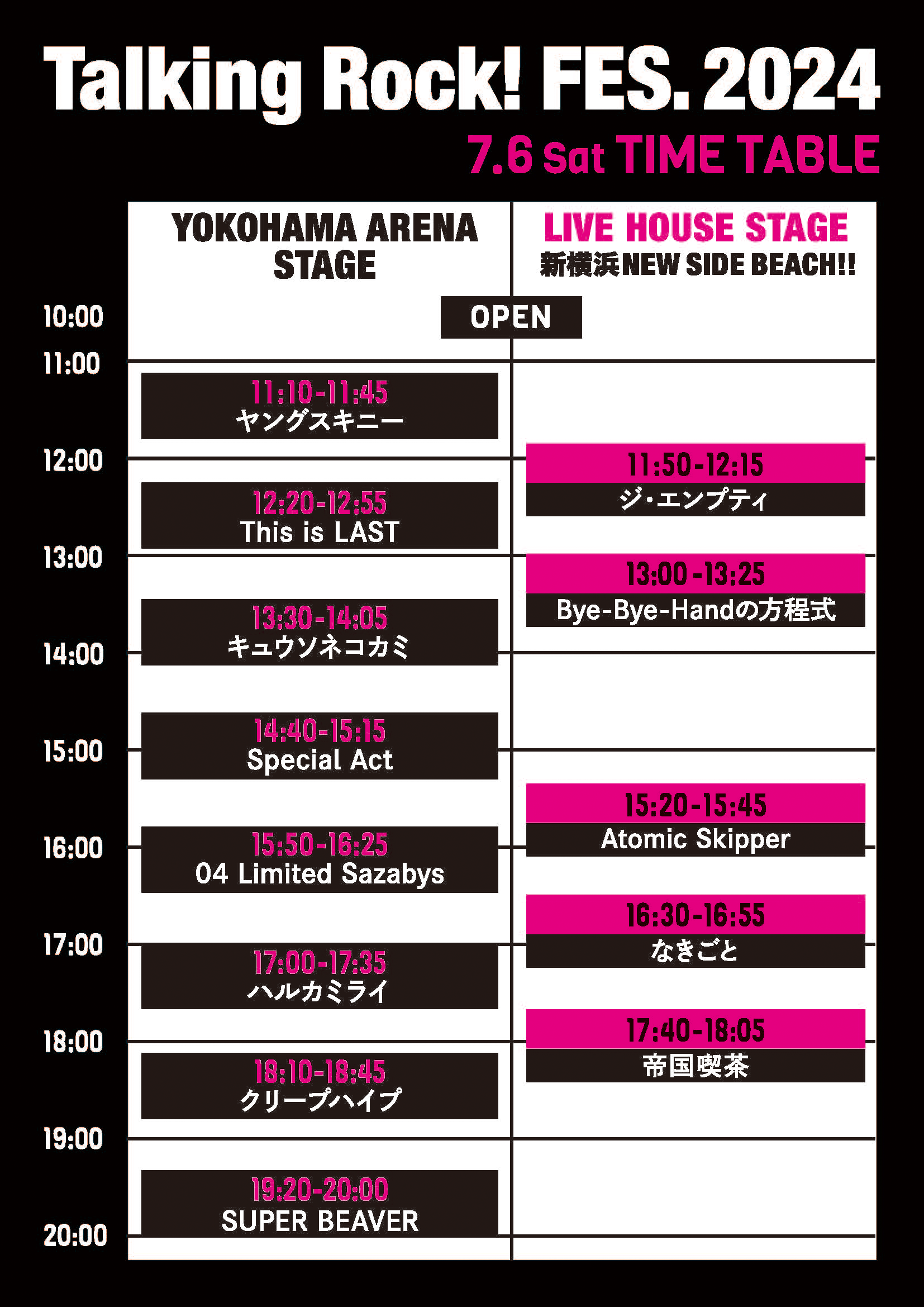 キュウソネコカミ、クリープハイプ、SUPER BEAVER、This is LAST、ハルカミライ、04 Limited Sazabys、ヤングスキニー、Special Act