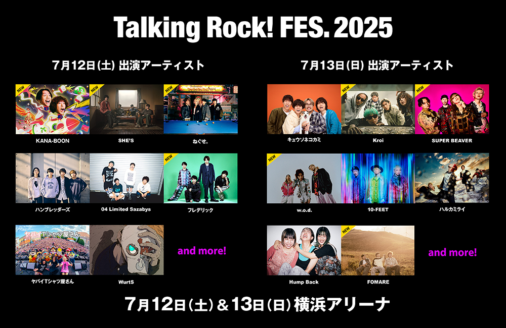 2025年7月12日(土)、13日(日)に、毎夏恒例のTalking Rock!主催イベント『Talking Rock! FES.2025』が、今年も横浜アリーナと新横浜NEW SIDE BEACH!!の2ステージ制にて開催される。