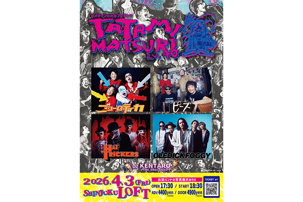 カメラマンたたみ、自主企画イベント開催!ニューロティカ、ピーズ、HAT TRICKERS、OLEDICKFOGGY出演決定