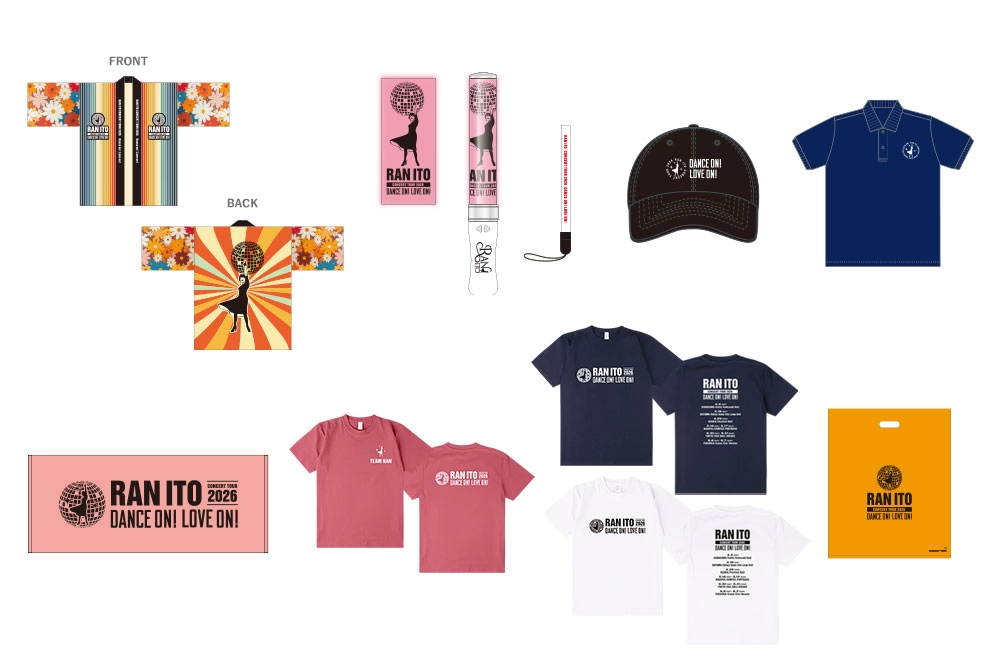 ツアーグッズの事前配送通販が本日18時よりスタート。応援のマストアイテムである7周年を記念したNEW法被や、NEWペンライトをはじめ、新登場のポロシャツ・キャップ、TEAM RAN Tシャツ、ツアーTシャツ、フェイスタオル、ショッパーと充実のラインナップとなっている。