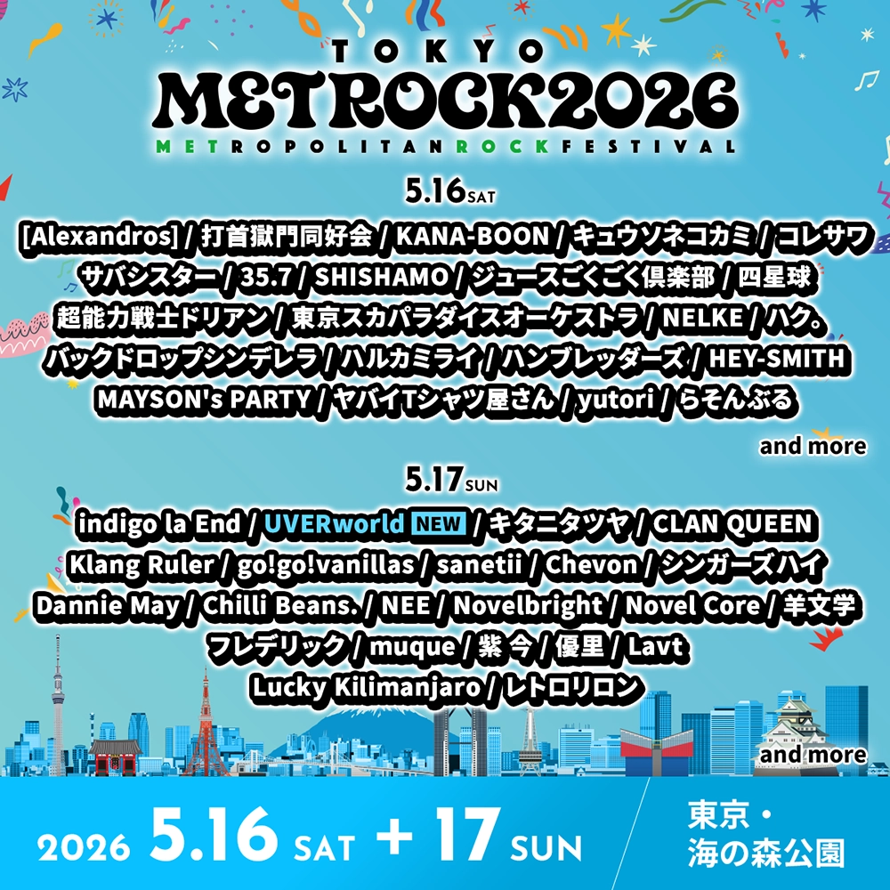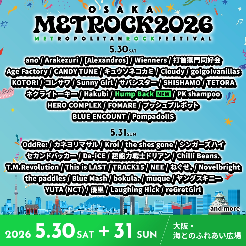 春の野外ロックフェス「METROCK2026」の第5弾出演アーティストとして、UVERworld、Hump Backの出演が決定した。