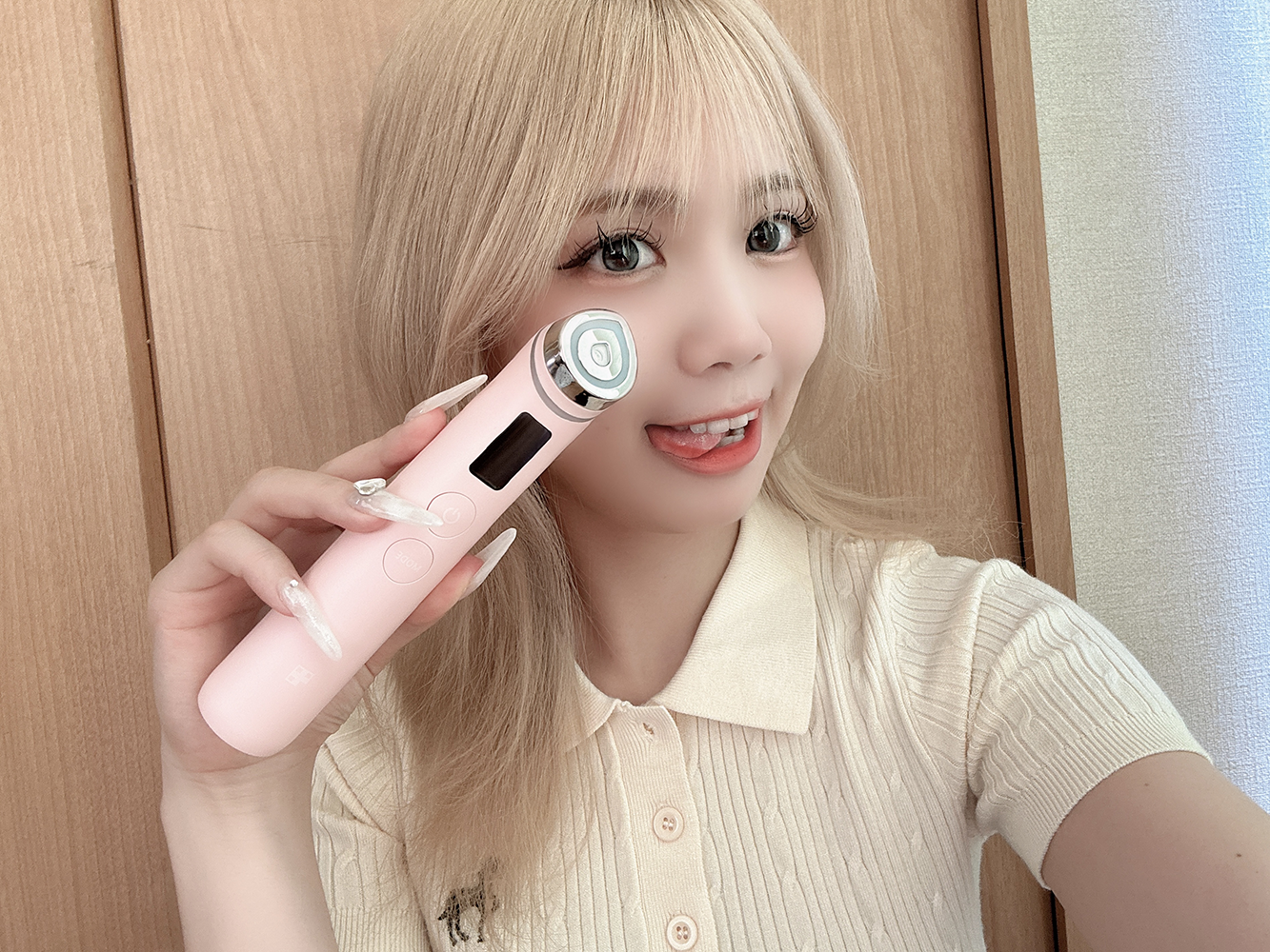 あはははは。毎日やってるんですけど、少しずつお肌が改善されているんじゃないかなという実感があって。メディキューブの美顔器は毎日、使ってますね。