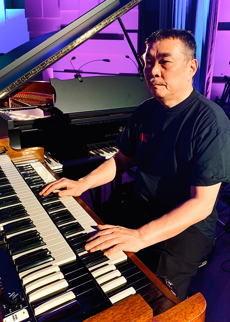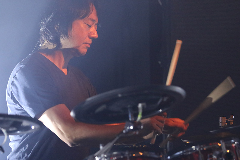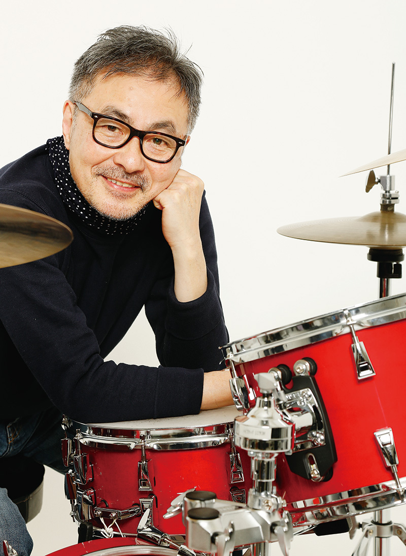 ドラムセットの前にやってくるのは、そのドラムの持ち主でもある、松本隆。