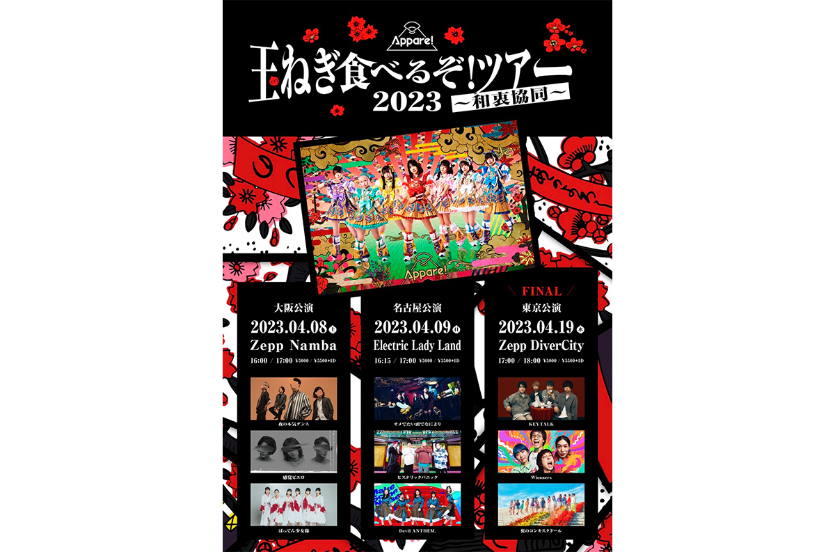 Appare!、初の対バンツアー開催!KEYTALK、Wienners、虹のコンキスタドールなど豪華ゲストを発表