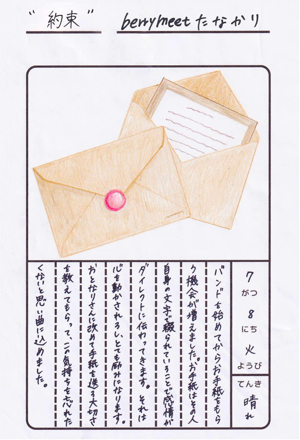 後半3回の「絵日記」は、メンバーが曲に込めた想いを手描きの絵日記でお届けします。