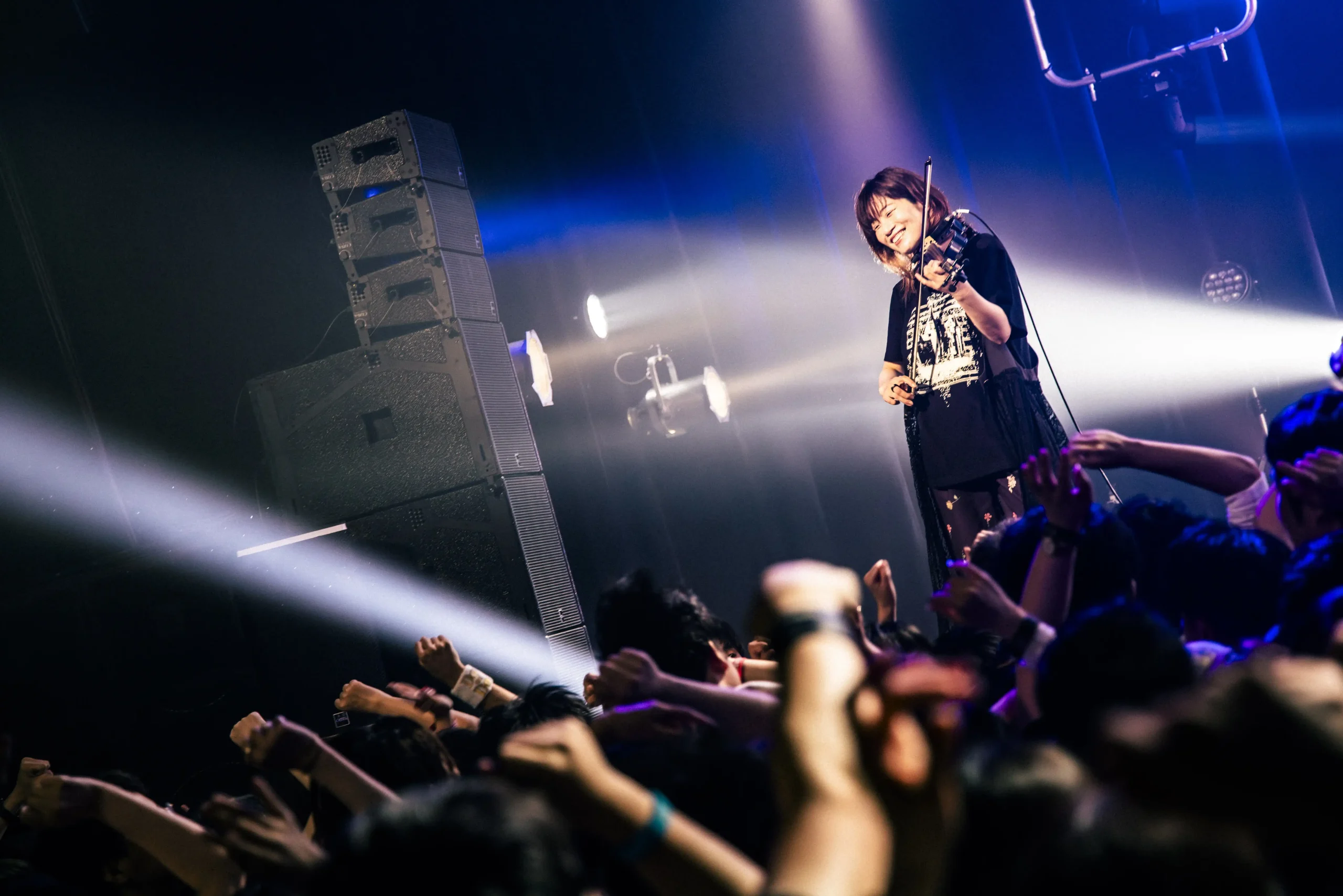 「来年にデビュー20周年を迎えます。その日までこの“MOTHERLAND”というテーマで遊び倒したいと思います」と意気込みを語り、「新曲やっても良いですか?」と本編ラストとなる新曲「The Parade」が始まる。東出真緒(Vn)の演奏に乗せた金井の感傷的な歌声で始まると、柿沼の勇ましく心躍るギターリフがインする。おぉ、OPで演奏したあの曲だ!