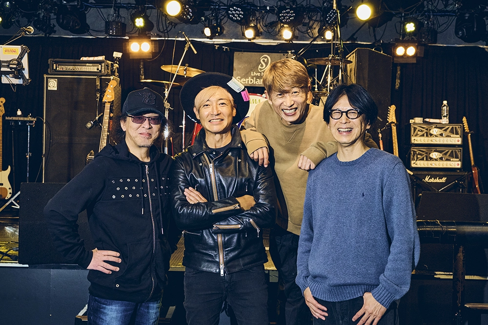 ユニコーンの川西幸一(Dr)、手島いさむ(Gt)、EBI(Ba)の3人によるバンド、電大とつるの剛士の座談会をお届けする。3人とつるのが親交を深めるきっかけとなったのは、今年7月28日に神奈川・リビエラ逗子マリーナで開催されたユニコーン企画のライブイベント「UNICORN MACHURI『LIVE 1173』」に、つるのがゲスト出演して電大とのコラボレーションが実現したことだった。この共演で手応えを感じたことがきっかけで、2025年2月11日に神田明神ホールで開催される、つるのの『ROAD TO 50 LIVE ~御利益 LIVE 2025~』(第1部はFC公演)の第2部で、つるのが参加して、電大のライブが行われることが決定した。その2部のサブタイトルは、『電大260000V~電撃!神田明神 LIVE 2025』である。知り合ったきっかけ、来年2月の共演ライブのこと、さらに50歳(来年、つるのが50歳)という年齢についてなど、幅広い話題について4人に語ってもらった。終始笑いの絶えない和やかな座談会となった。