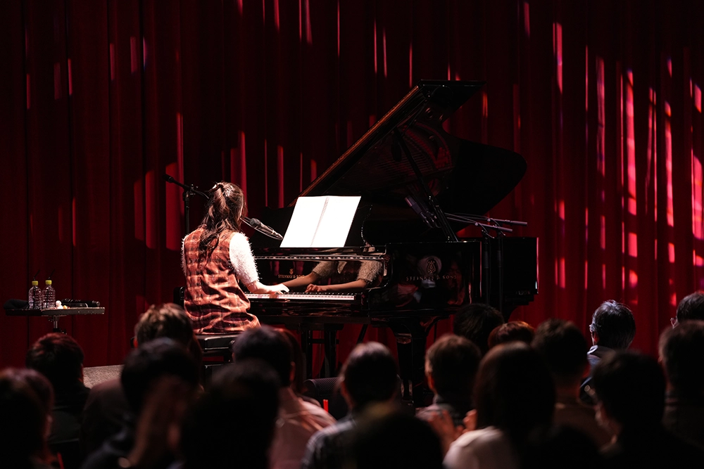 そうなんですよ。お食事をしたり、飲み物を飲みながら楽しむっていうライブスタイルって、私のお客さんは今まであまり経験がなかったはずなんですよね。でも、これは、今回のライブの中で印象的だったことのベスト3ぐらいに入るんですけど、お客さんがすごいリラックスして楽しんでくださってて。もっと緊張感が漂う感じかなと思ってたら全然違かった。そのことが、私にすごい安心感を与えてくれたし、なおかつ、集中もできた。私自身も安心してみんなに託せるというか。『じゃあ、私はこっちを頑張るね』みたいな感じで、ピアノと向き合うことができたなと思います。