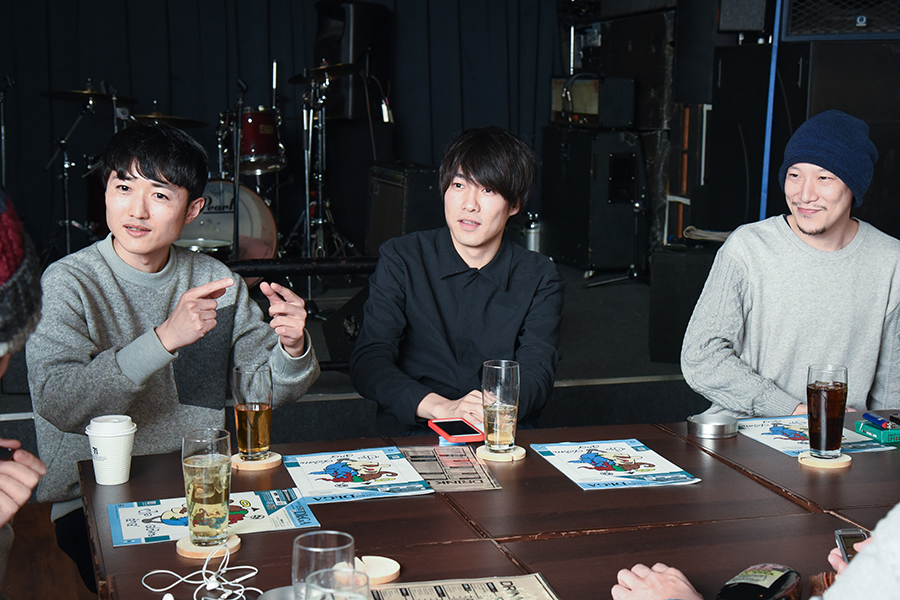 安部で、その日の打ち上げで、そういう話になったんです。「もう一回やろうよ、次はバンド同士で」って。