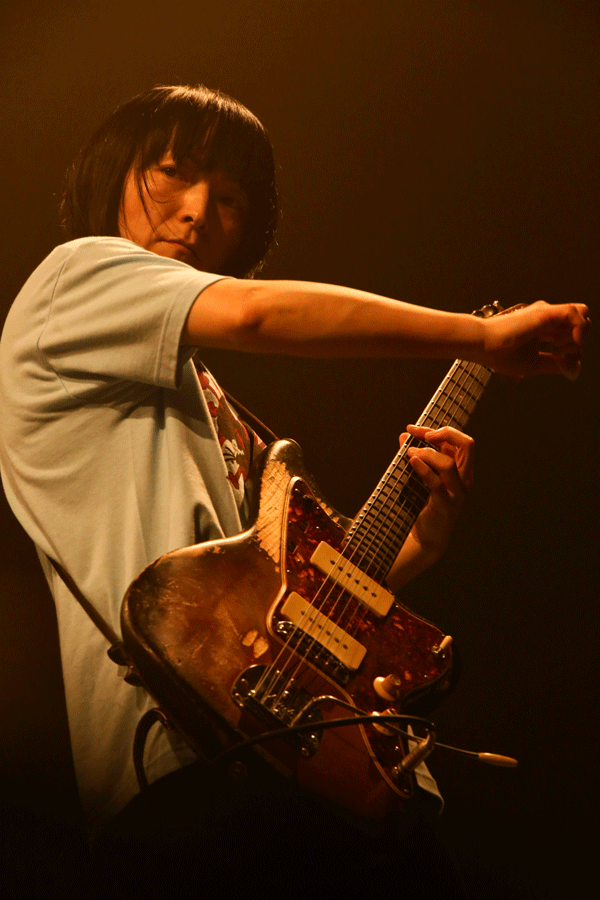 厳かさとユーモアの入り混じった向井の口上とともに流れ込んだのは“鉄風 鋭くなって”。中尾憲太郎のベースサウンドが、4人一丸の鋭利なアンサンブルが、フロアの熱気を切り裂きかき乱していく。ひりひりと胸を焦がす鉄弦の軋み。太鼓と銅板の大音響。向井の渾身の咆哮――そんな唯一無二のファクターのひとつひとつが奇跡的なバランスを描きながら、観る者の衝動を歓喜の果てへと突き動かしていく。