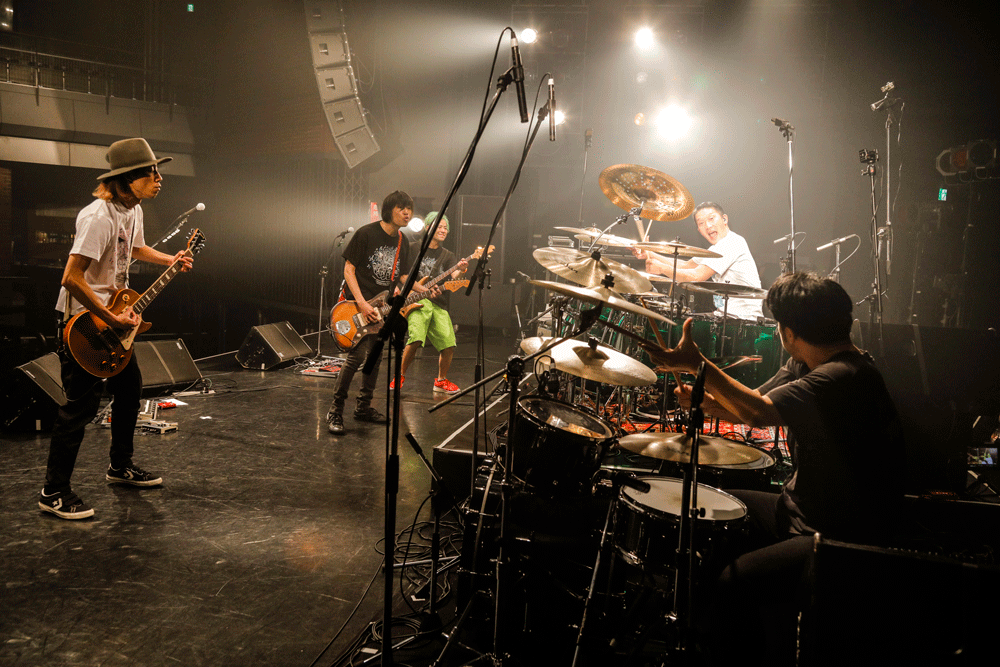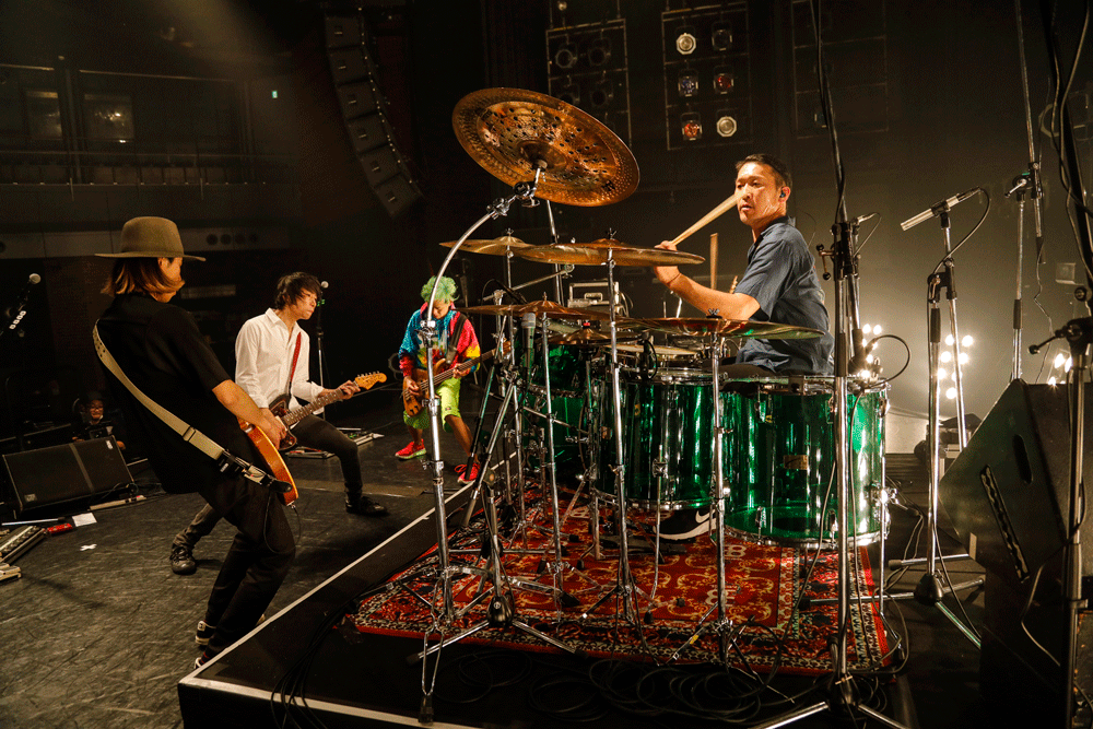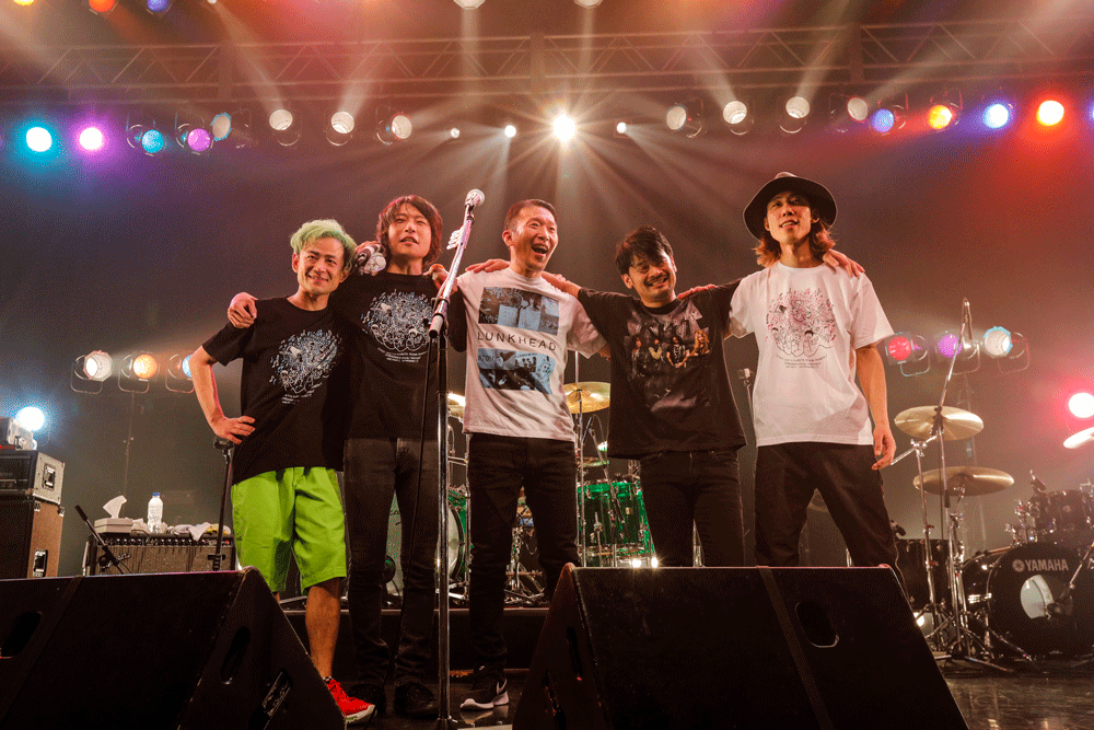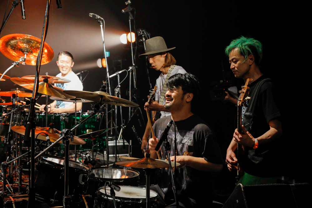 そしてアンコール。心のどこかで期待し、でも無理だろうと思っていたことが現実になった。10年前にバンドを脱退した石川龍と桜井のツイン・ドラムによる、5人編成のランクヘッド。桜井が満面の笑顔でリズムを合わせ、合田と山下が寄り添うように龍のドラムのすぐそばに来る。そのシーンを見るだけで、泣き笑いのような不思議な感情が湧き上がるのを抑えられない。曲は「カナリアボックス」と「前進/僕/戦場へ」。バンドの過去、現在、未来が一つに繋がった。