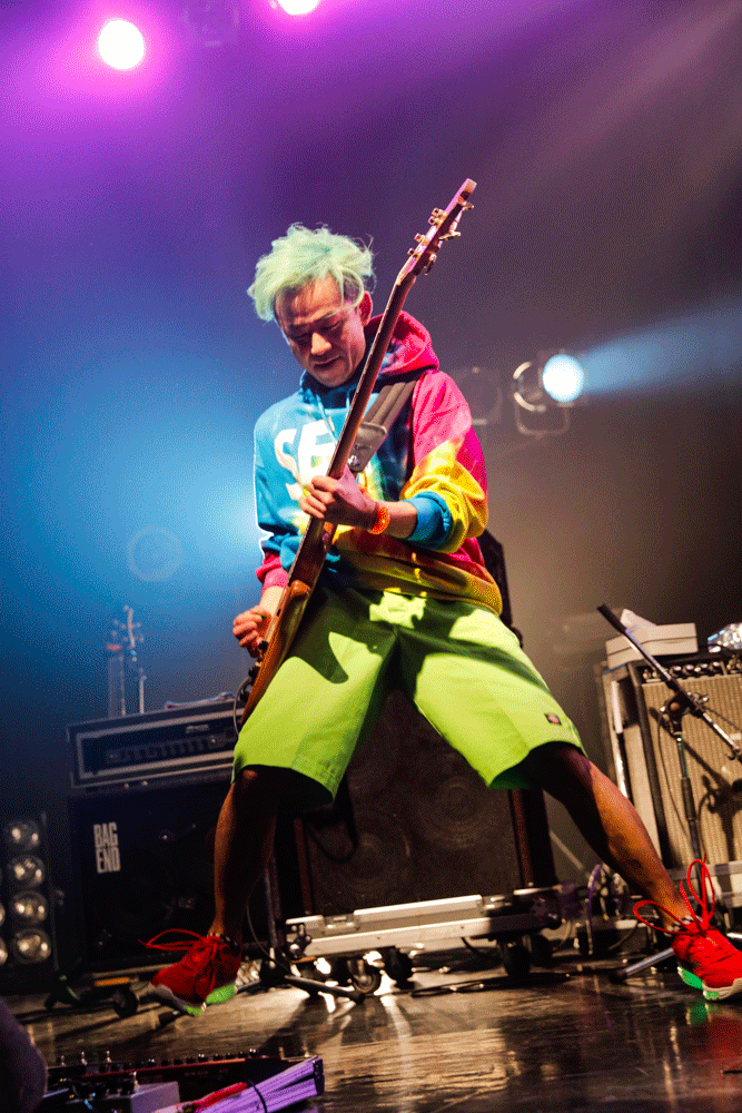 無音の会場に爆音が轟く。「地球のみなさん、ランクヘッドです!」、小高芳太朗(Vo,Gt)が叫ぶ。オープニングは「ギグル」。音響、照明はもちろん、メンバーのパフォーマンスも通常のライブとクオリティは変わらない。誰も見ていなくても合田悟(Ba.)はくるくる回り、ステージを走る。YouTubeの視聴者のカウントが1500、1600人とどんどん増えてゆく。複数のカメラを駆使した映像のスイッチングも素晴らしい。「プリズム」「月光少年」と、ラウドでエモい曲を連ねてぐんぐん飛ばす。