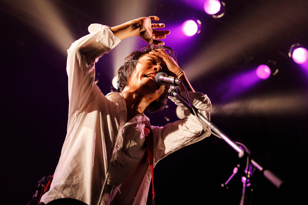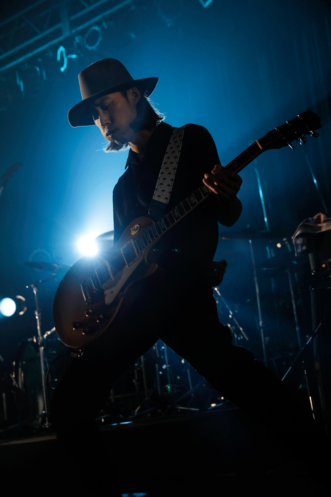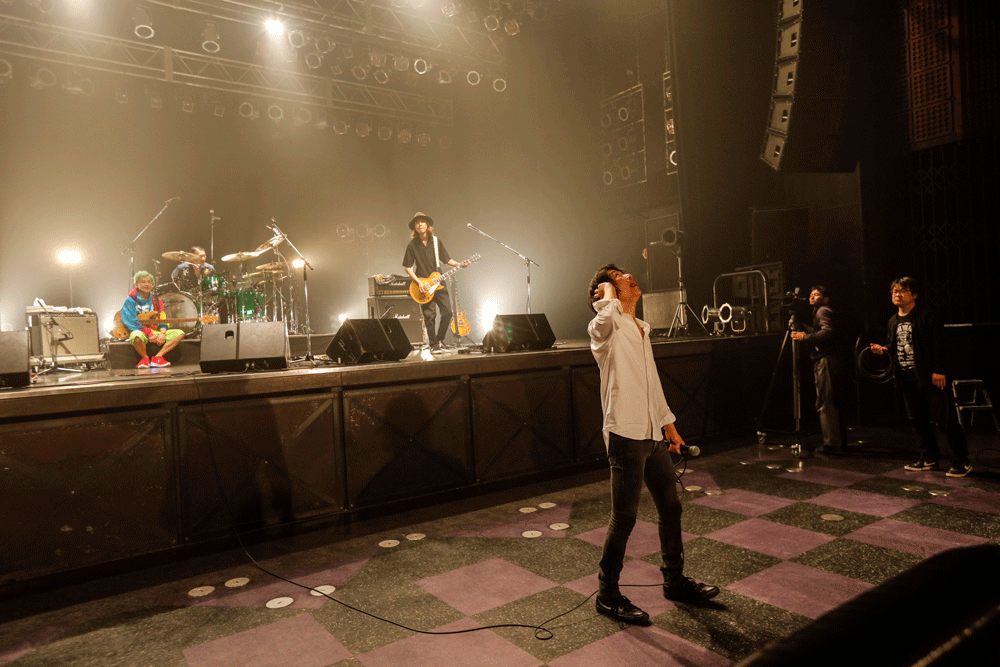 結成20周年ツアーのファイナル、こういう形になったからこそ、みんなで作り上げた今日に意味がある―――。小高の言葉に、悔いや恨みはまったく感じられない。カメラ越しだからこそ一対一の迫力が増す、眼力がすごい。音がクリアなぶん、山下壮(Gt)の正確な指使いやコーラスがはっきり聴こえる。桜井雄一(Dr)と合田が鬼気迫る絡みを見せる「WORLD IS MINE」から「体温」「決戦前夜」を経て「シンドローム」へ。20年を凝縮したベスト盤『ALL TIME SUPER BEST』を中心に、惜しげもなく代表曲を繰り出す最強セットリスト。視聴者はいつのまにか2000人を超えている。