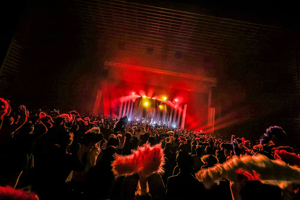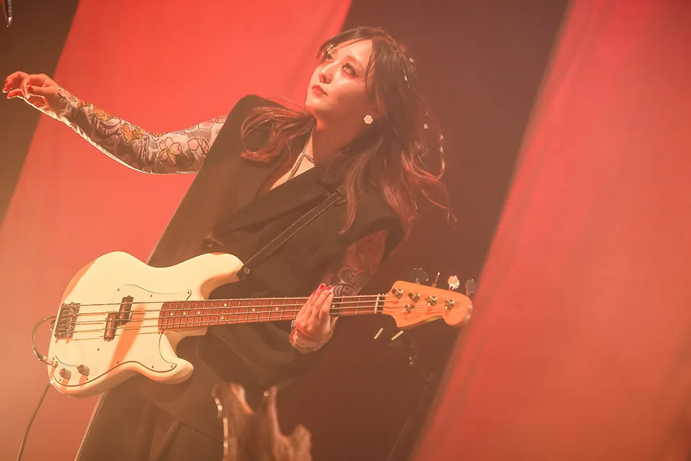 昨年2月にリリースされたアルバム「十二次元」、新曲「01」(TVアニメ「アンデッドアンラック」オープニングテーマ)を携えた今回のツアー。その集大成となる本公演で女王蜂は、研ぎ澄まされた芸術性、そして、派手さと美しさと憂いを兼ね備えたエンターテインメント性を完璧に体現してみせた。