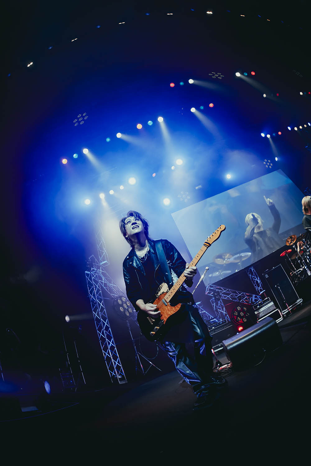 舞台にはまず最初にMC役のBooが登場。VersuS公演の概要を説明をしたあと、さっそく集音器に向かって声援の練習を行なった。その後、「mark」のイントロとともにメンバーがオンステージ。ライブはバンド後期、武瑠が無気力だった10代の頃の自分が目標に向かって一歩を踏み出し、メンバーと次々と出会い、SuG結成に至るまでを描いたMVが印象的だった「teenAge dream」で幕を開けた。「お前はちゃんと生きてるか」、そんな風に聴き手の心までヒリつかせるようにこの曲のストレートなメッセージを叩きつけていた当時の彼ら。その届け方が変わっているように思えた。そのまま「DEAD or DEAD」、「SCREAM IT LOUDER」を連発していくSuG。解散のブランクを感じさせないバンドサウンドは、ツアーを通してさらにエネルギッシュなものとなり、5人が互いのこの日の呼吸をとらえたところで放たれたのは「CRY OUT」。無機的なブレイクビーツに有機的にバンドサウンドを掛け合わせていく緻密なサウンド作りは、解散前よりもさらに洗練されていて、音でドキドキ胸を震わせていく。