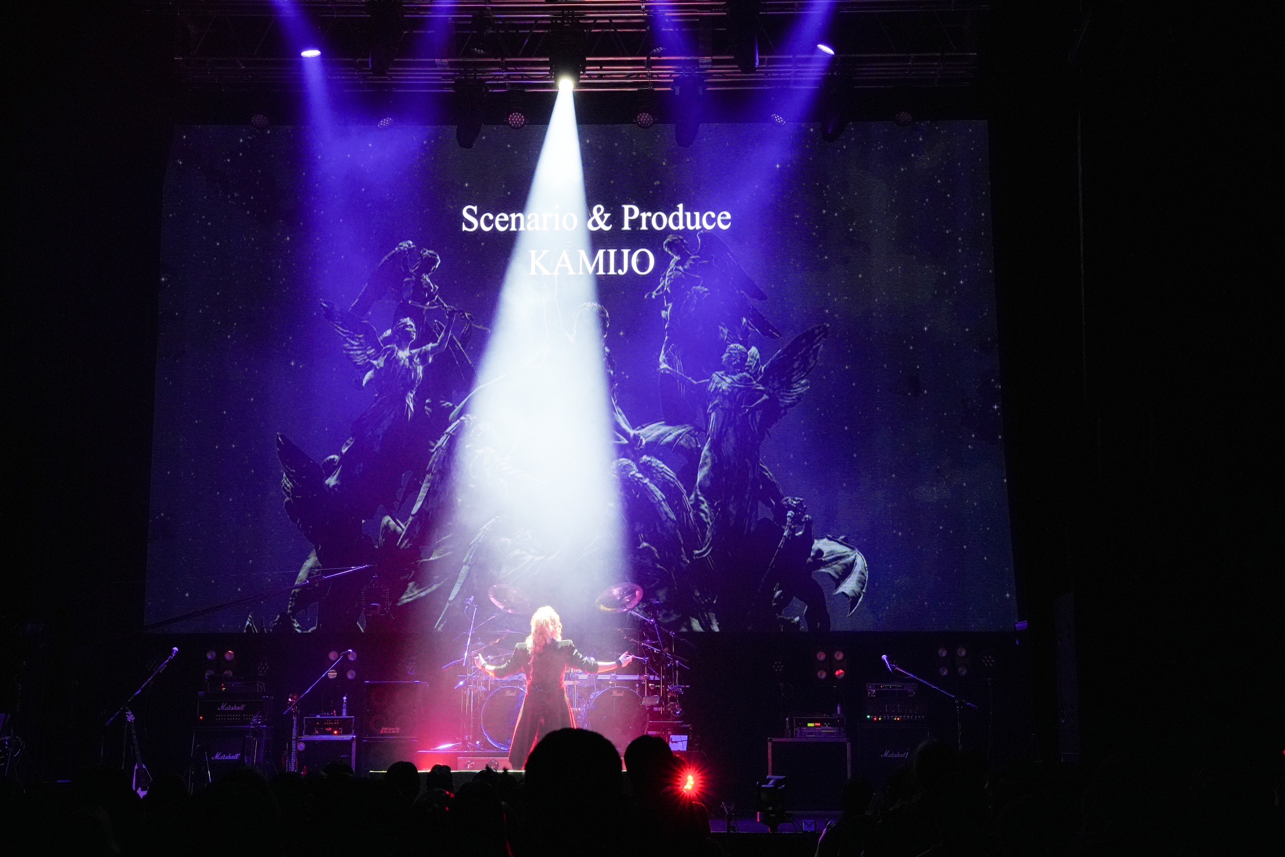 10周年を期に、デビュー以来紡いできた史実を元にしたストーリーを見事に完結させたKAMIJO。2024年1月には、新曲を提げて東名阪ツアーを行なうことも決定した。全公演共に今回と同様のサポートメンバー、そして豪華声優陣の演技とLEDによる映像演出で彩られるフルストーリーライヴとして開催される。