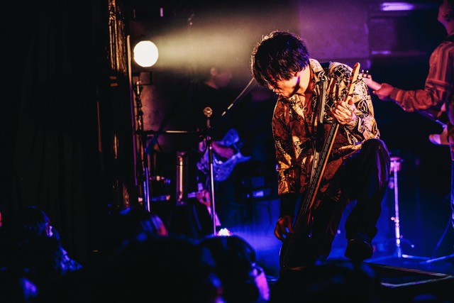 タイトルと呼応するように眩く白い幾筋もの光がステージに降り注いだ「Searchlights」では、視界が広がっていくようなスケール感と緻密さを合わせ持つサウンドと、KENのビタースイートなボーカルがフロアを心地よく揺らし、パンキッシュな攻撃性とサビのキャッチーなメロディのギャップが魅力の「Under My Skin」では、ハンドクラップが巻き起こる中、KENがペットボトルの水を巻き散らし、フロアにマイクを向ける。ワン・アンド・オンリーなバンドであるOBLIVION DUSTの魅力の一つはその二面性(もっと多面的かもしれないが)にある。ポップでありオルタナティブ、センシティブでありダイナミック。相反する要素が交錯する曲が目の前で放たれるカタルシスは何者にも代えがたく、紳士と野獣が入れ替わる瞬間を見るような色気も兼ね備えている。アグレッシブなパフォーマンスで魅了しながら、シャツのボタンとネクタイを最後まで緩めないストイックなKEN のMCも初めて見る人はそのギャップに驚く可能性大。この日も「今日、本番直前までずーっと謎なことがあったので聞きたいんですけど、PALOOZAってどういう意味ですか?」と会場の名前の意味を問いかけ、「KENさーん!」と絶叫する男性ファンに「初めて“さん”って呼ばれたかもしれない。柏の人、素敵だね」と笑顔を見せる。かと思うとK.A.Zに「“Traces”のサビでキュイーンっていうギターが入るのいいね。90年代のグランジみたいで」と話しかけ、照れさせたりと、チャーミングで自由すぎるノリで沸かせていた。