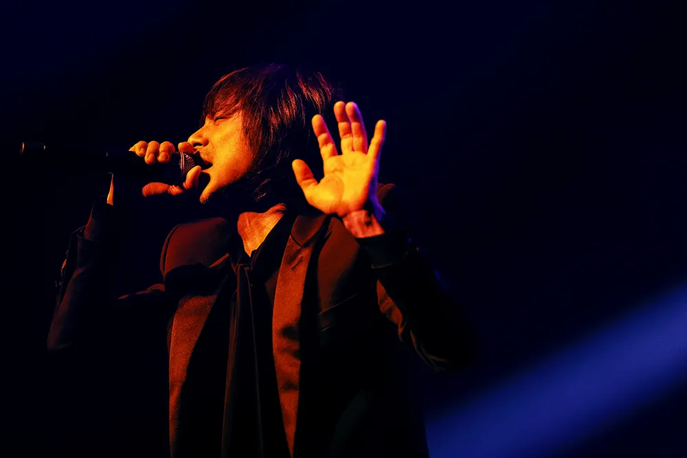 続いては高橋一生への提供曲であり、自身のソロアルバム収録曲でもある「きみに会いたい -Dance with you-」。小林のピアノに続いて、宮本のフェイクで始まると、会場内に高揚感が漂っていく。「有楽町ベイベー! 会いたかったぜ~!」と宮本が叫んでいる。宮本のエネルギッシュな歌声が、<きみに会いたい><きみを抱きたい>という恋愛の衝動を、ロックの衝動へと変換していく。宮本が歌いながら飛び跳ね、踊っている。ダンスとは精神と肉体の解放だ。バンドのダイナミックな演奏によって、宮本が自在なパフォーマンスを展開していく。観客もハンドクラップして参加している。前回の『ロマンスの夜』との大きな違いは、自作曲の割合が増えていることだろう。名曲のカバーでは、楽曲の作り手と歌い手に対して敬意を抱き、丁寧に歌う姿が印象的だったが、自作曲での宮本は思う存分弾けていた。ドラマティックな歌とダイナミックな演奏に、熱烈な拍手。