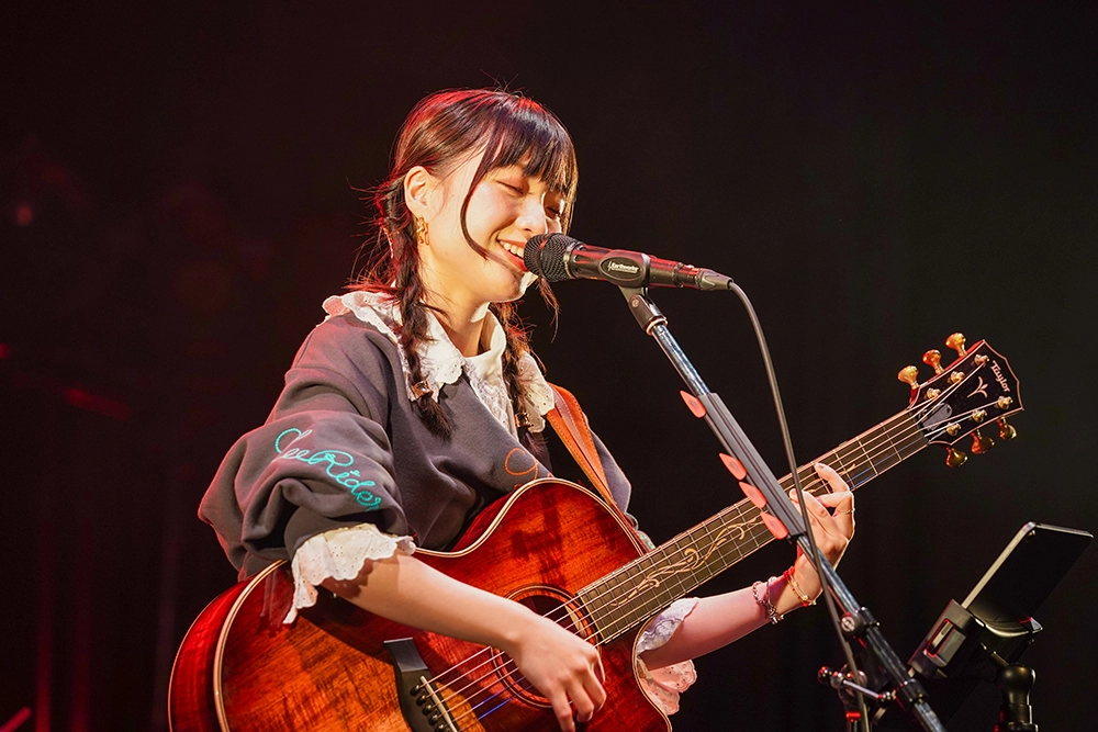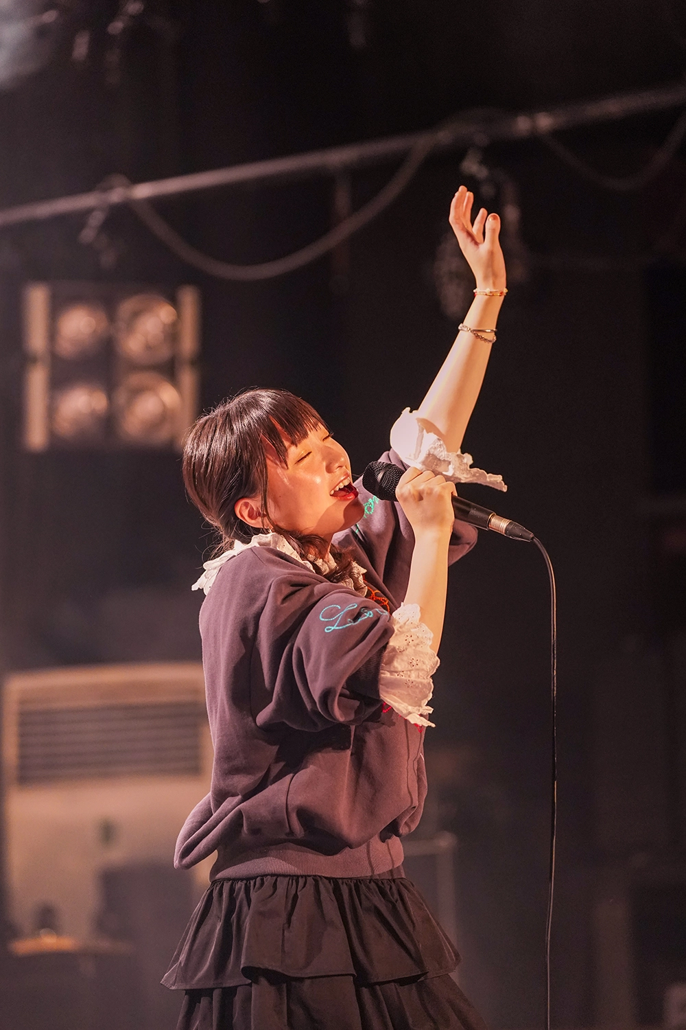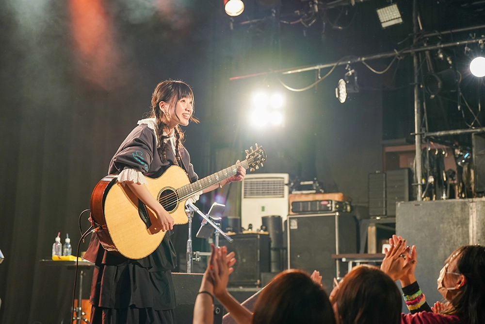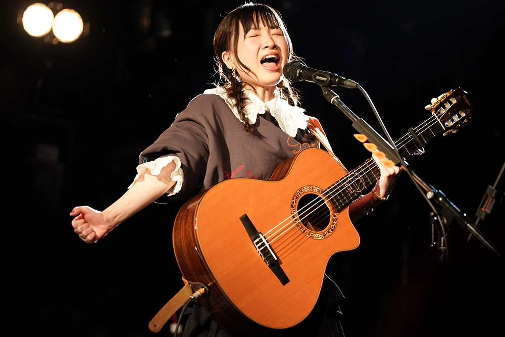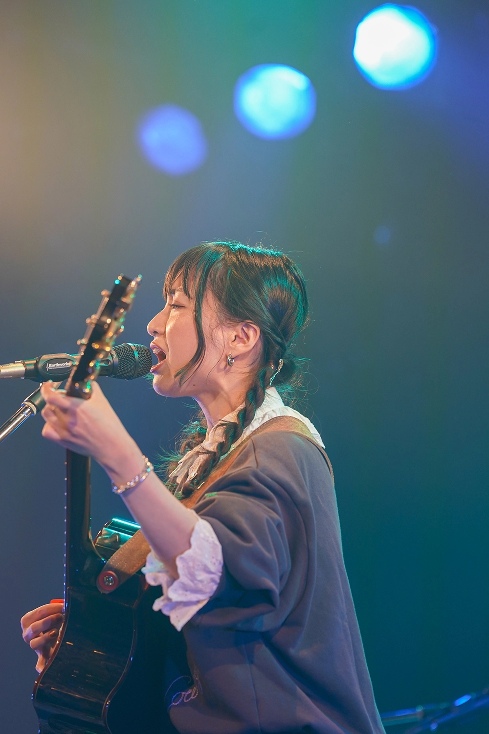 最後に歌われたのは、有安自身がまだまだ「夢」を追いかけていくことを伝える2曲。強い気持ちで主張する「夢の途中」は、弾き語りで演奏すると、有安杏果なりのブルースとして響き渡った。そして続けたのは「指先の夢」。「夢の途中」で見せた強さの裏にある弱音も見せるように歌い、《将来の夢 今度会ったら聴いて欲しいな》とファンへ語りかけるようにしてステージをあとにした。