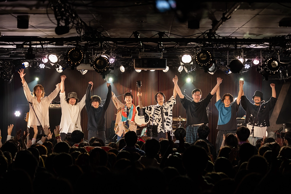 最初は三浦とふたりで始めて、佐々木とテディと出会って、やり始めたのが2010年で、こんなすばらしいバンドになれたことが本当にうれしい。僕たちは本当に思い残すことはない、常にマジで全力で走ってきたから。最後にこんな素敵な景色を見させてもらって、本当にうれしい。このあとも音楽を続けていくが、間違いなくその糧になるバンドになりました、本当にありがとうございました、みなさん──と、岡田は感謝を伝えた。