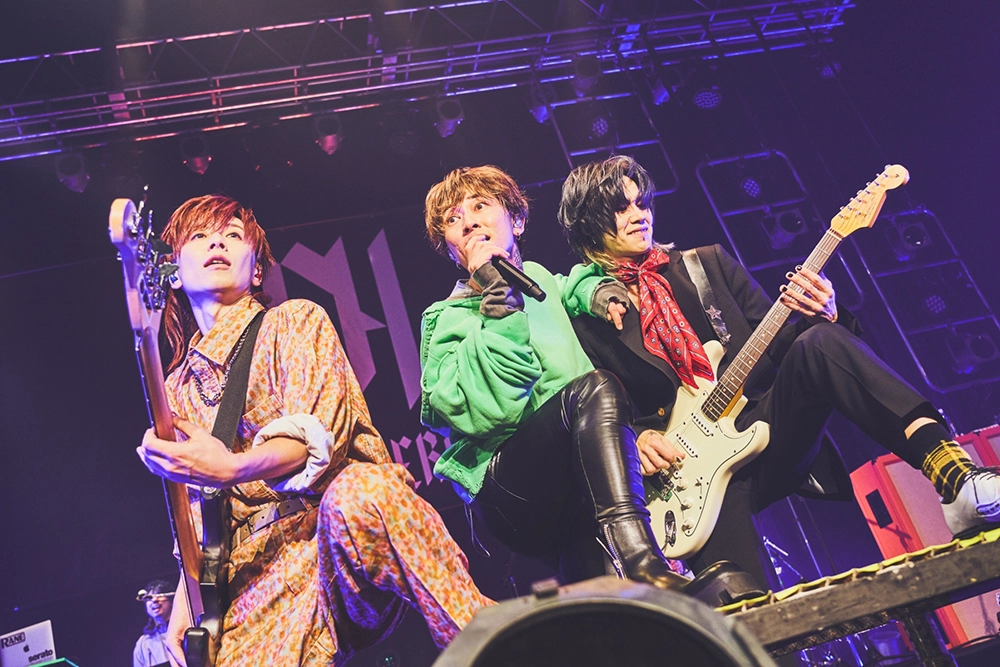 壮大なSEに鮮やかなレーザーライトが飛び交う中、観客の手拍子に迎えられてメンバーがステージに登場。センターに立ったASHが、「ツアーファイナルだ!ド派手に行こうぜ!!」と叫び、ファイナル公演が派手やかに幕を開ける。1曲目は最新作『HUMAN』のOPナンバーでもある「One Two Three」。タイトでドライブ感ある演奏に映えるASHのエネルギッシュな歌声、堂々としたステージパフォーマンス。彼らのライブを見るのは初日の千葉LOOK以来で、ステージ全体を見渡すことも出来ない小さなライブハウスと比べるのもおかしな話だが。Zeppの広いステージだからこそ、ステージに立つ5人の自信に溢れた立ち姿や表情の凛々しさは、初日とは明らかに印象が異なるのが分かる。