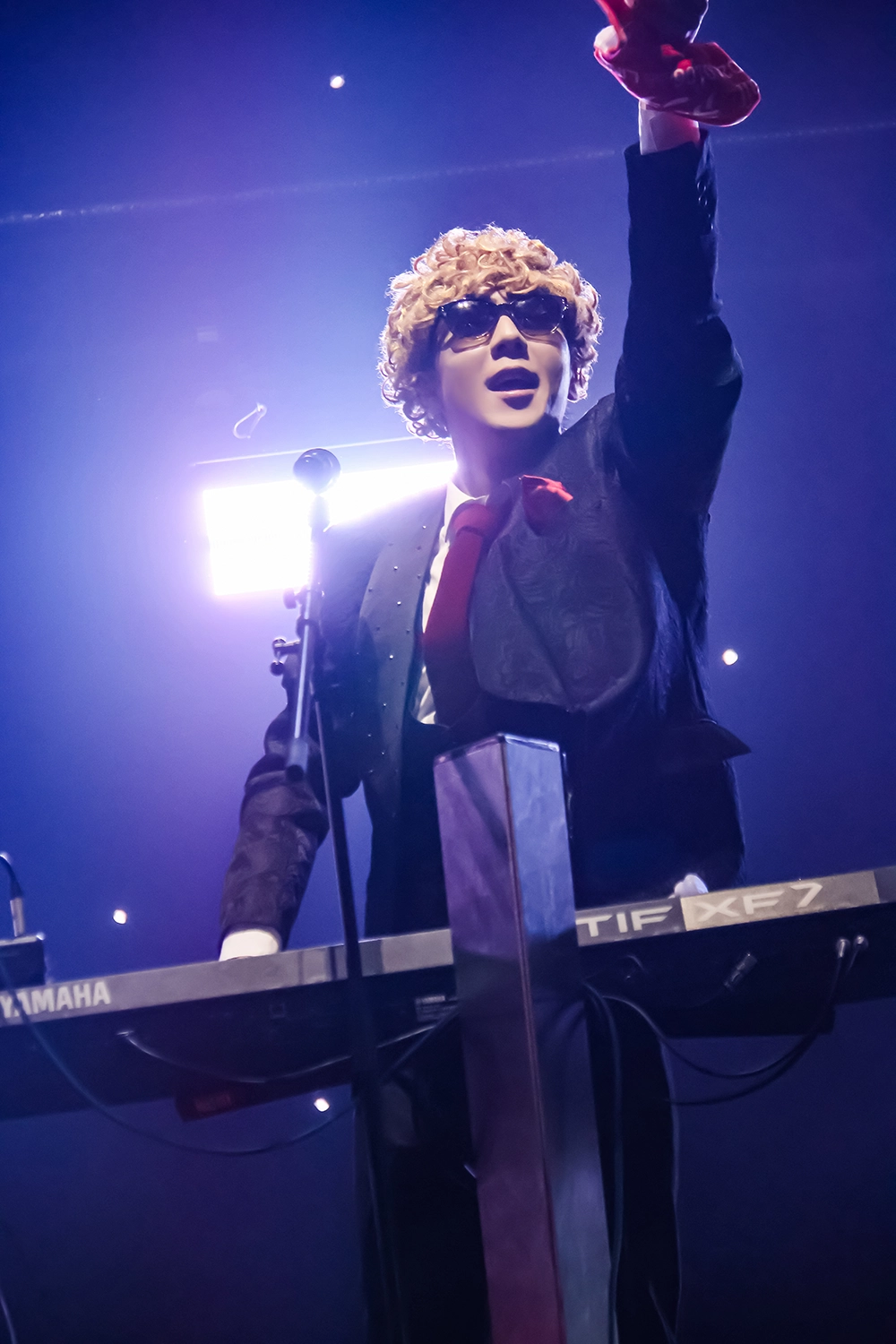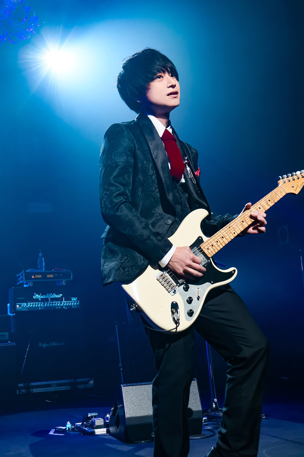 締めくくりの最終日の1月6日、SEが響き、沙幕にメンバーのシルエットが浮かび上がり、大歓声の中、幕が落ちると全員、正装のスーツ姿。ひとりひとりにスポットライトが当たり、「メープルガンマン」でライブはスタート。上部にニャッピーくんのアイコン、左右にシャンデリアが配され、センターにレッドカーペットが敷かれたステージセットもいかにもアンカフェらしい。続く「逃避回路」ではみく(Vo)がシャウトし、カノンがベースを高く掲げ、赤く染まったステージの中、のっけから加速。客席には色とりどりのNYAPPY RINGが揺れている。