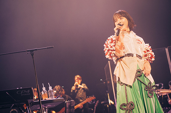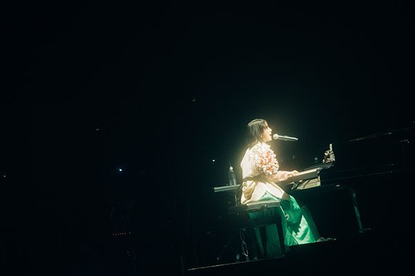 「このアルバムはたくさんの生の楽器の音でいっぱいのアルバムです。人の手の温度や空気がぎゅうぎゅうに詰まってる作品なんですよ。だからね、最後、一緒に演奏してくれる人がいっぱいる形でお届けできてめっちゃ嬉しい。でも、アルバムの中には、私のピアノと声だけの曲もあったりして。そんな両極端なところも含めた『TWO MOON』なので、次はひとりの曲を歌いたいと思います」