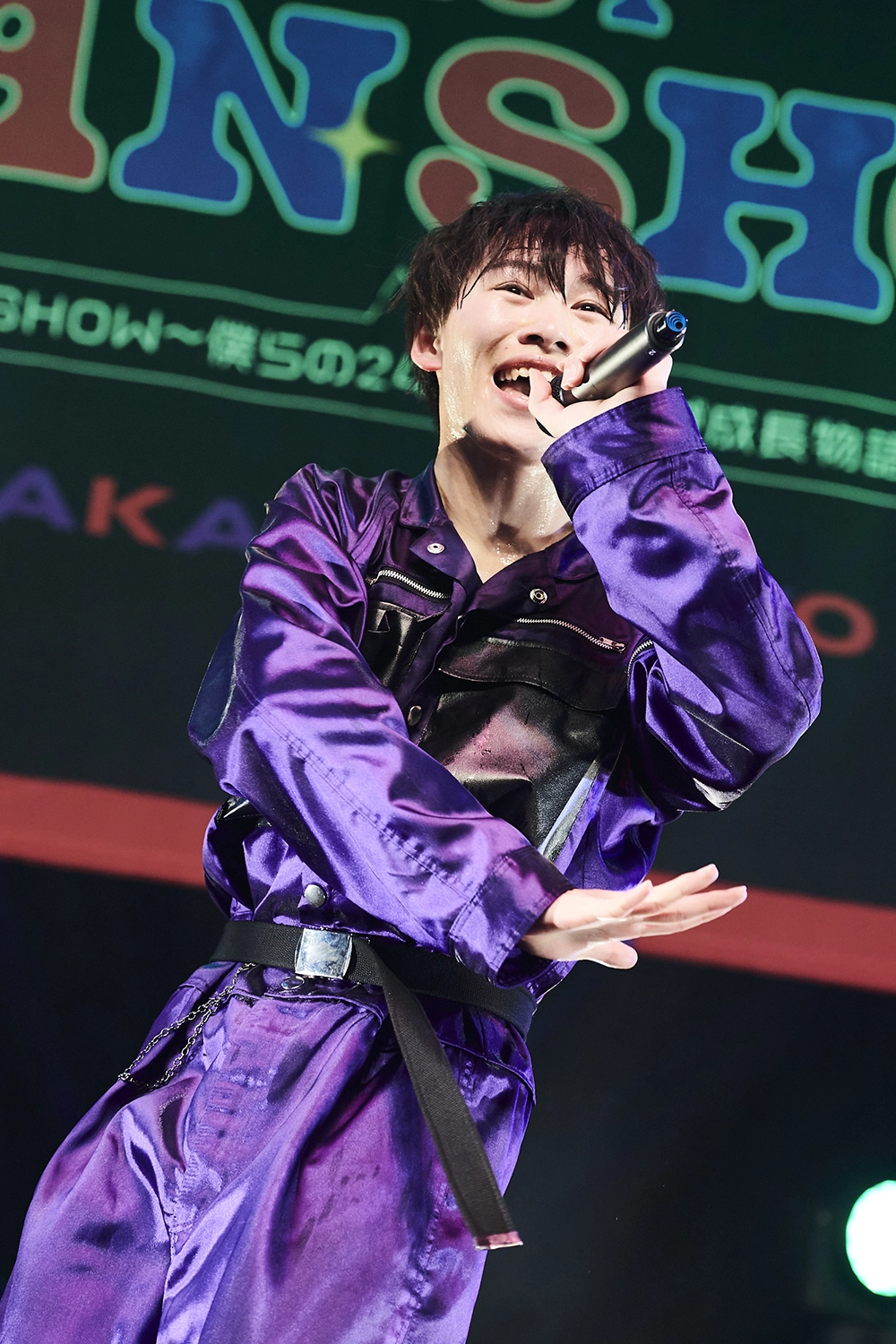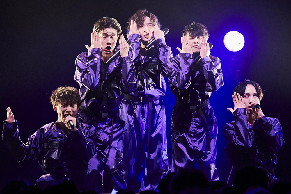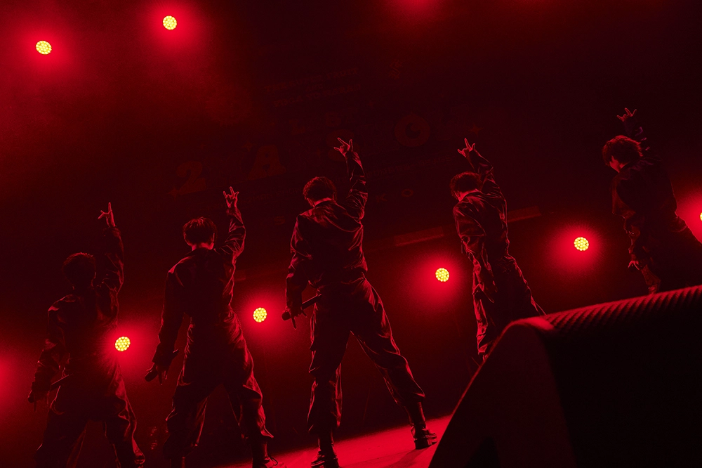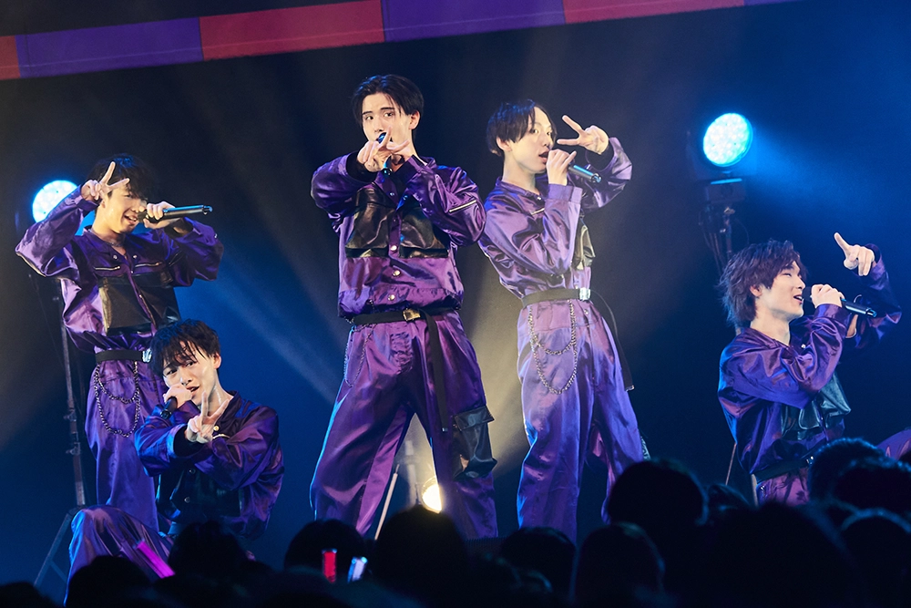 大谷篤行、橋爪優真、添田陵輔、笠松正斗、内藤五胤。元気いっぱいの自己紹介から声出し練習、ポップで明るい「鼓動のFighters」から、クールでダンスな「EGUI」、ピアノのイントロからスローでメロディアスな「いとしき世界」へ。猫の目のようにくるくる変わる曲調と、どんなテンポでもくるくる踊る、息の合ったステップとボーカルでしっかり魅せる。静かでロマンチックな雰囲気から、再びアップテンポに転じて「たりないぶんはキスをして」へ。ツーマンだから曲数は少ない、しかしたりないぶんは愛と情熱で埋めて、世が世のエッセンスがぎゅっと詰まったセットリスト。あっという間にライブは終盤。