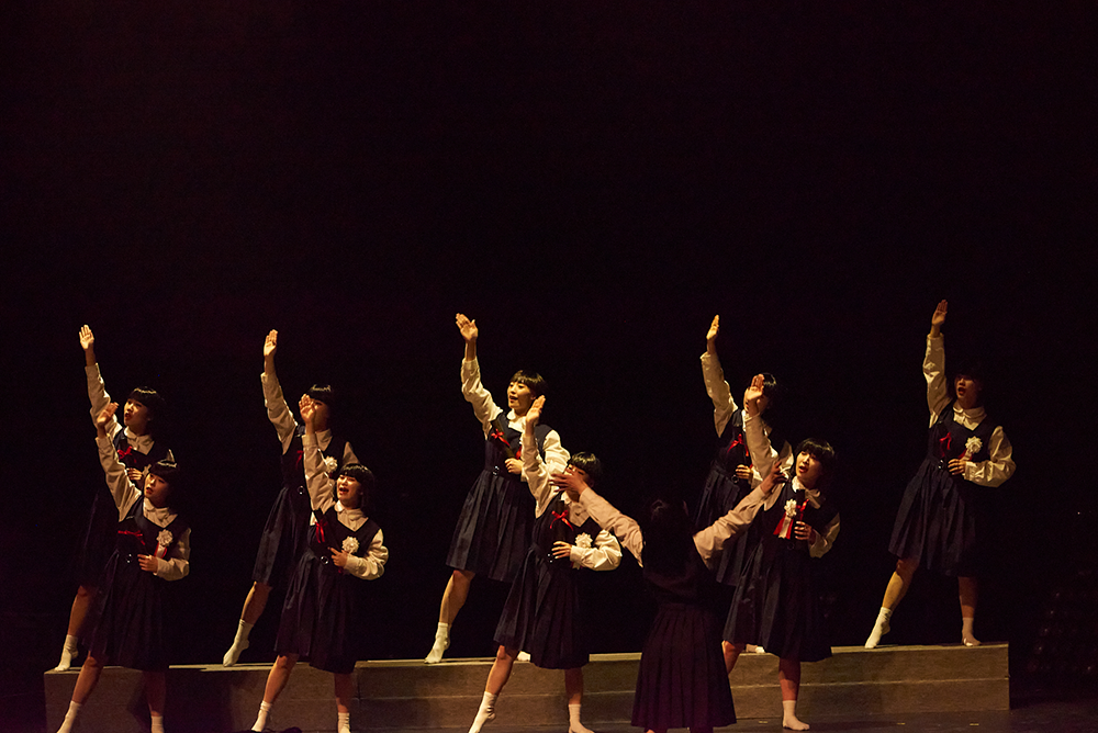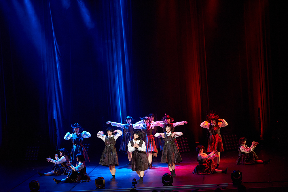 そうして、このあとはメンバーによるグッズ紹介。そのグッズをバズーカに入れ、客席に飛ばしてプレゼントしたあと、「お知らせ」として5月15日から全国5カ所を巡る『アバンギャルディ2ndライブ(仮)』ツアーが決定したことをステージで発表すると、場内は大歓声に包まれた。そうして、制服に着替えたメンバーが「仰げば尊し」とともに卒業証書の筒を片手に整列したところで、私立アバンギャルディ学園の卒業式典がスタート。ここでは斉藤由貴の「卒業」をバレエ要素をたっぷりちりばめた振り付けで華麗に踊って卒業式を締めくくり、メンバーはステージを後にした。