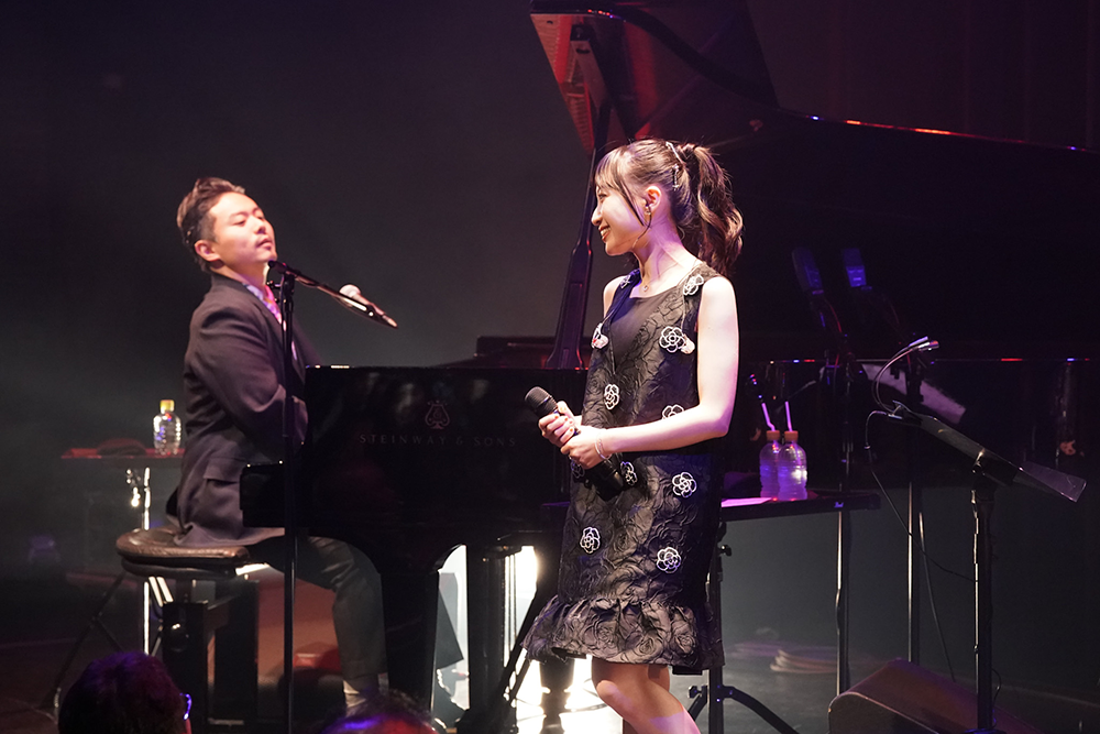 食事を楽しみながらライブを観れるビルボードライブのステージに立った有安は「なんだか私のライブじゃないみたい」と笑いながら、「ずっと前からジャズのライブをやるのが夢だったので、夢が叶って嬉しいです」と語ると、ピアノの大林から「初めてのジャズライブだけど堂々と歌っててカッコいい」と賞賛された。そして、ライブの後半では、大林と共作したというオリジナルの新曲を2曲披露した。「楽しかったことや悲しかったこと、1日あった出来事をお月さまと話す曲です」と紹介した「Tsuki Talk」はピアノによる和メロのリフから始まる英語歌詞のジャズバラードで、月に向かって独り言を呟いているうちに、いつの間にか宇宙に連れて行かれたかのような広がりを感じた。続く、「Regeneration」は「みんなで歌いたいと思って作った」と言うジャズサンバ調の楽曲で、歌詞は<ラララ>のみ。演奏前にコーラスの練習を行い、本編ではラララの大合唱とコール&レスポンスだけでなく、観客のコーラスに有安が即興で美しいメロディを載せるというシーンもあり、ジャズライブに歌で参加できたという喜びをもたらせてくれた。