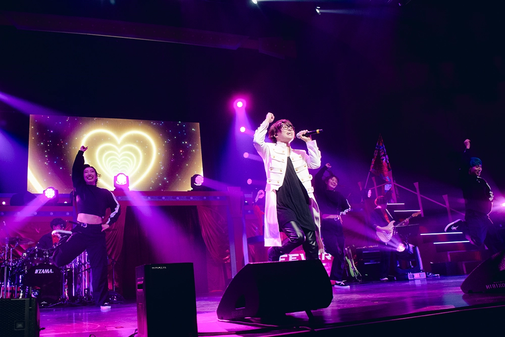 「listen」終わりのMCでは、この曲のダンスが不安だったと打ち明ける☆イニ☆に対して、テオくんが「不安そうなのがバレバレだった」と伝える。その流れから、「listen」の一部分をもう一度踊ることになった……と言葉で書くのは簡単だが実際は大変。ステージ袖に控えているマニピュレーターが指示通りの場所から音を出し、それに合わせてバンドも演奏をする、とけっこうな手間がかかる。普通なら「みんなに迷惑をかけるからやめとこう」となるところだが、この2人は違う。しかし、これは2人がバンドやスタッフを無茶振りに付き合わせているというよりも、彼らとの間にある信頼関係によって実現した流れだと思う。