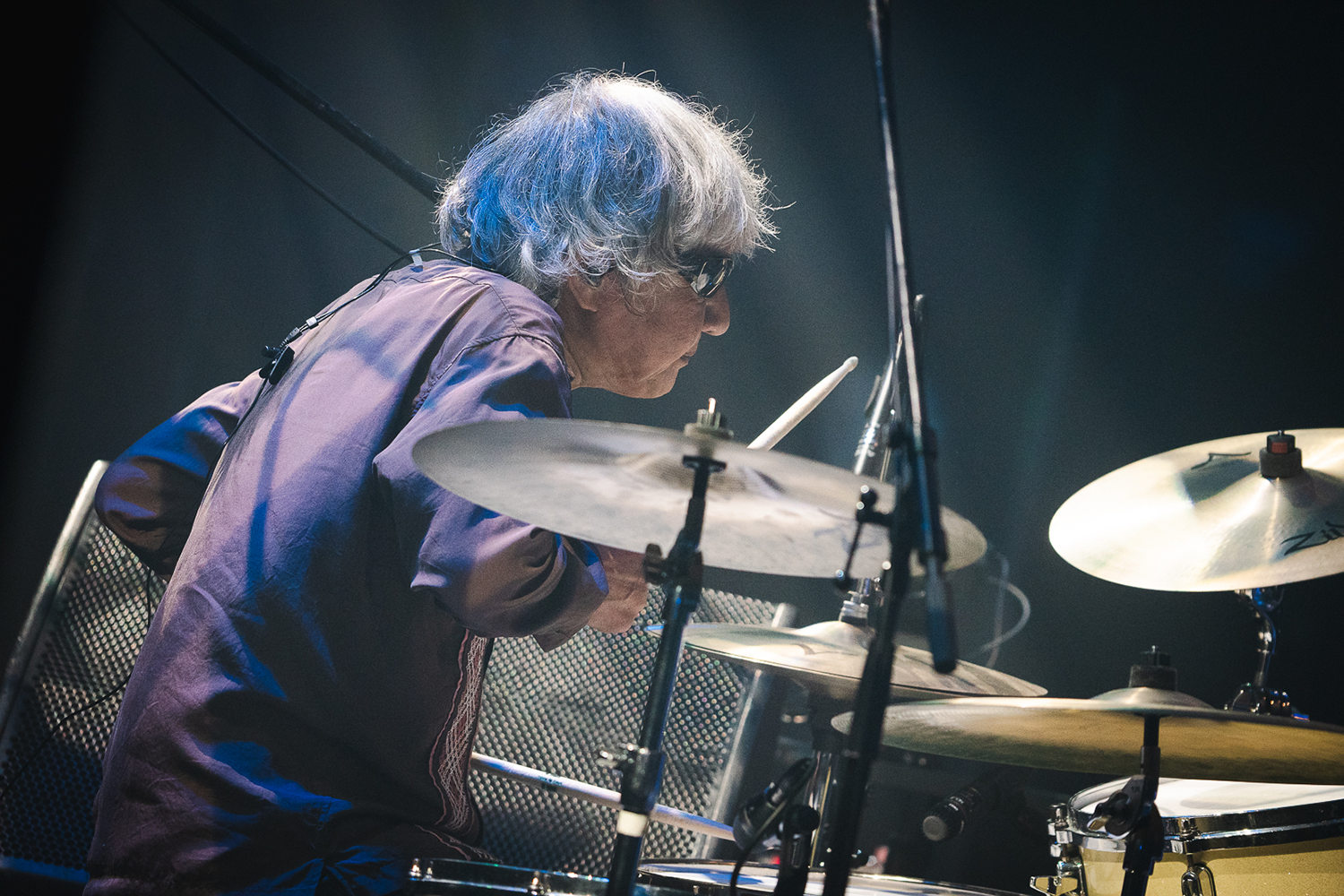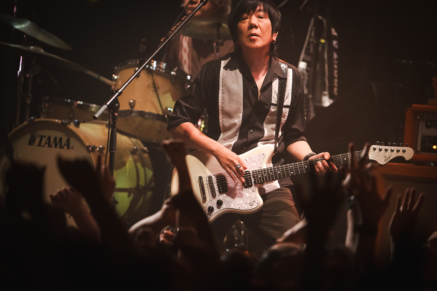 ここで山中以外のメンバーによるMCコーナー。人生でいちばん数多くライブを観ているピロウズの35周年のライブに参加できことを光栄に思いますと語った宮川に続き、佐藤が“ファンから送られてきた「ゼルダの伝説」のTシャツが……”というトークで和ませ(?)、真鍋は「バンドがスタートした9月16日、こうやってライブができて本当に嬉しく思います。35年間、いろんな形で付き合ってくれて、みんな本当にありがとう!」と率直な言葉を放つ。「35年間、俺はずっと考えている。ロックンロールバンドについて」というコメントから始まったのは、もちろん「About A Rock’n’Roll Band」。ロックンロールに触れ、体の中に火花が散った瞬間を切り取ったこの曲は、今もなお瑞々しさと鋭さを保ち続けている。