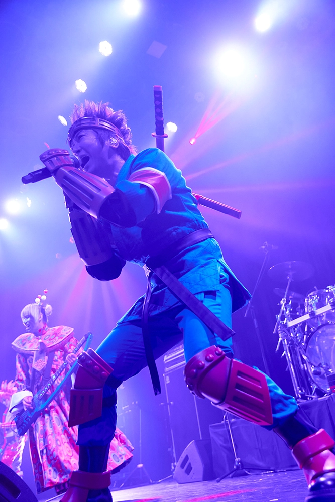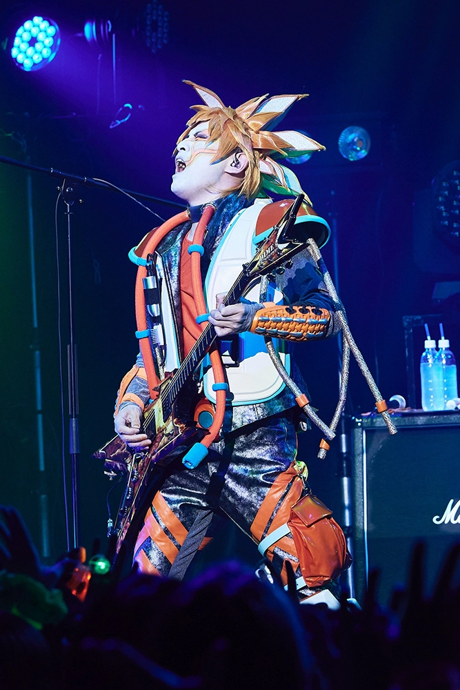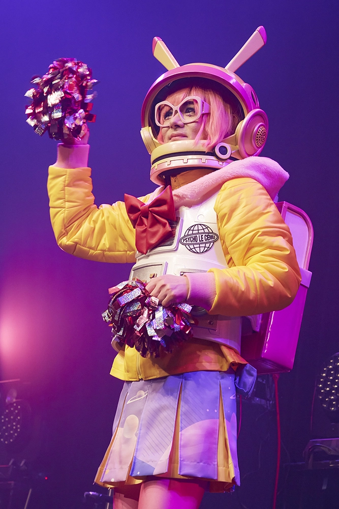 Lidaがギタリストとしての本領を最高に発揮したのはアンコール。マスクまでついた戦隊ヒーローのような衣装とは裏腹に、正統派のギタリストとして、あくまでオーソドックスなソロを奏でる。そのエネルギーに満ちた音色とフレーズに、会場はすっかり支配されたようだった。お芝居やダンスといった要素を取り入れつつも、Psycho le Cémuをあくまでロックバンドたらしめるのに、Lidaの存在は大きな役割を果たしている。