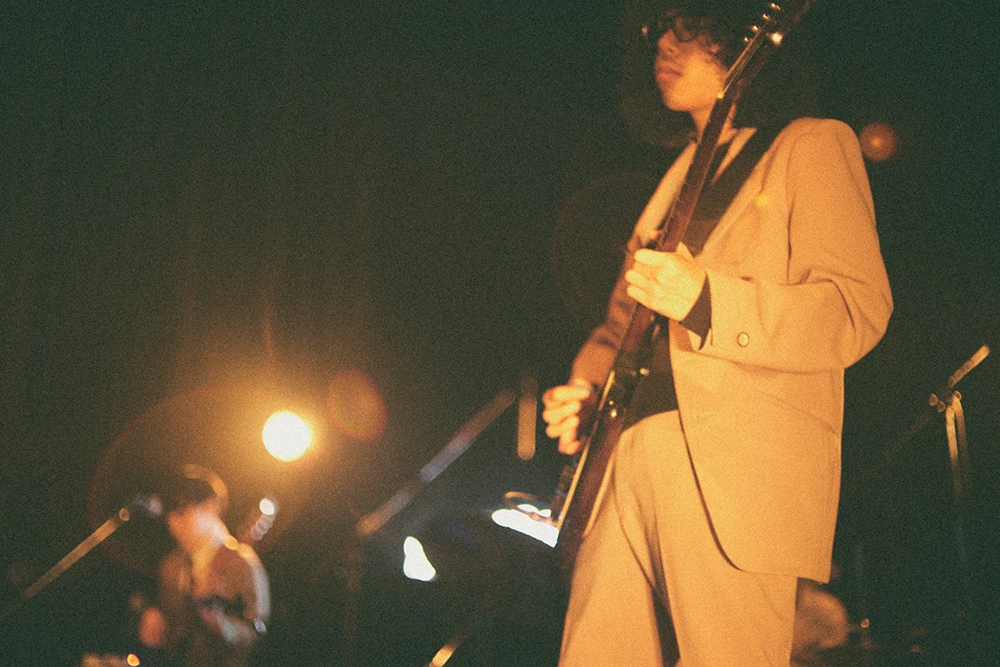 「いろんなね、普段やらないアレンジとかも詰め込んできたんで、最後まで余すことなく楽しんでいってもらえたら嬉しいです」という挨拶の通り、この日はライブならではのアレンジが数多く披露され、中盤の「Ooparts」は奥中の弾き語りから始まり、音源ではフェイドアウトしていくアウトロから急に「Mist」のリズムに切り替わるアレンジもクール。タイのインディバンドDOOR PLANTに影響を受けたという比志島國和の単音フレーズと奥中のカッティング、推進力のある赤塚舜のベースラインの組み合わせがシンプルにして美しく、清涼感を生み出す人気曲「琥珀」には場内から一際大きな拍手が贈られた。