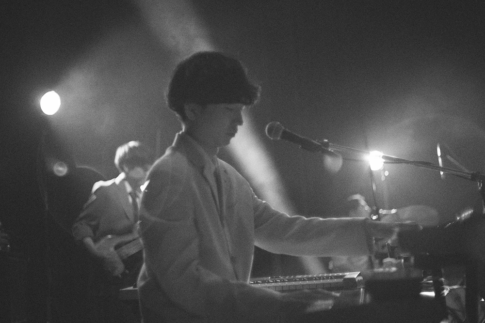 開演時刻になるとアルバムの一曲目を飾る「Turn Over」が流れ出し、メンバーがステージに登場すると、ライブはネオアコ感のある「whim」からスタート。舞台上に置かれたルームランプが親密で温かな空気を作り出した「Dance Alone」では奥中康一郎がAOR由来のメランコリーな歌を届け、ライブならではの長尺のイントロから「TAPIR」に繋げると、石嶋一貴のピアノソロと奥中のギターソロから、後半では神谷幸宏が手数の多いプレイで場内の温度を上げていく。ステージングからは基本的に彼ららしい平熱感が感じられるが、ときにアグレッシブなプレイで演奏を引っ張る神谷の存在はバンドのキーになっていると言えるだろう。