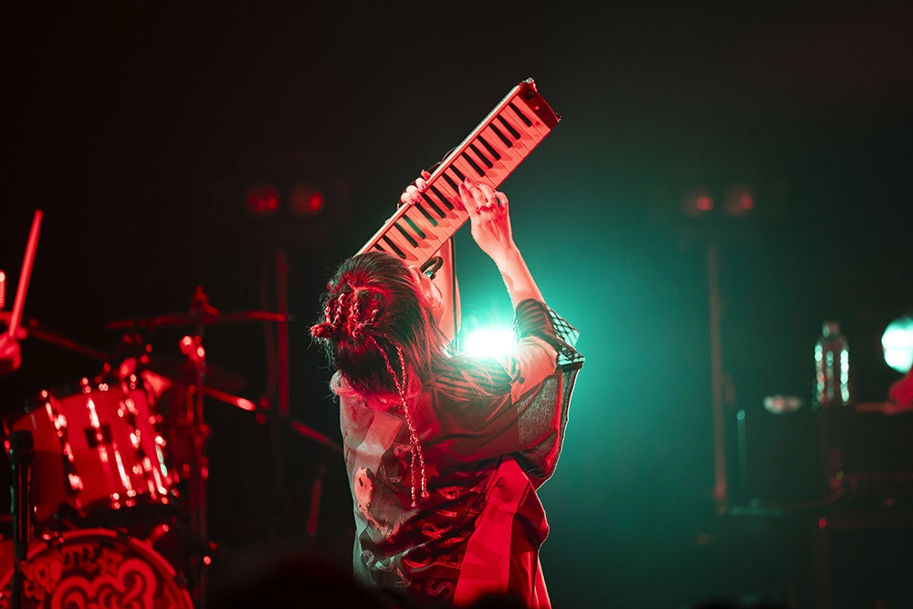 SHAKALABBITSがライブハウスに帰ってきた!5月6日(月祝)に東京・Spotify O-WESTで行われたワンマンライブ『SADISTIC AURORA SHOW』の会場は復活を待ち望んだオーディエンスで満員以上に埋まっていた。後のMCでUQUIが「ハコがあれとかいう噂も聞きますが、やってみないと、こんなに集まってくれるのかがわからないし。どこ行ってったの、みんな?」と冗談めかして言っていたが、実に7年ぶりの復活公演とあれば、フロアに熱気と汗で霧が出るほどのバースト状態になるのも当然だろう。