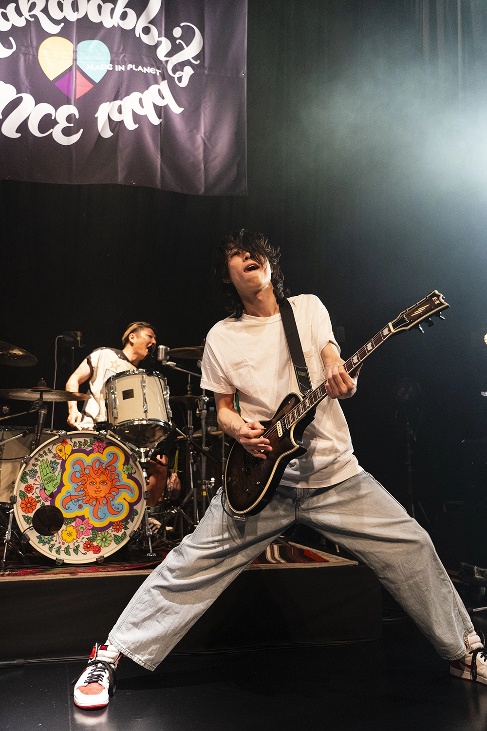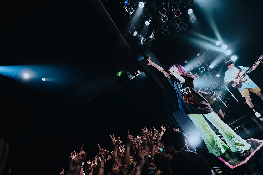 最初から最後までクラップ、ジャンプ、シンガロング、歓声が起こっていたので1つ1つには触れないが、裏を返せば、どの曲も一緒に歌いたくなるような歌詞とメロディを湛えており、自然と拳と声をあげたくなるくらいパワフルでアンセミックなバンドサウンドを生み出していた証左でもあるだろう。「ダスリングスープ」「Roller Coaster」「88 ROYAL SKA」という流れではギターとベースが曲を加速させており、生々しいダイナミズムを発揮していた。