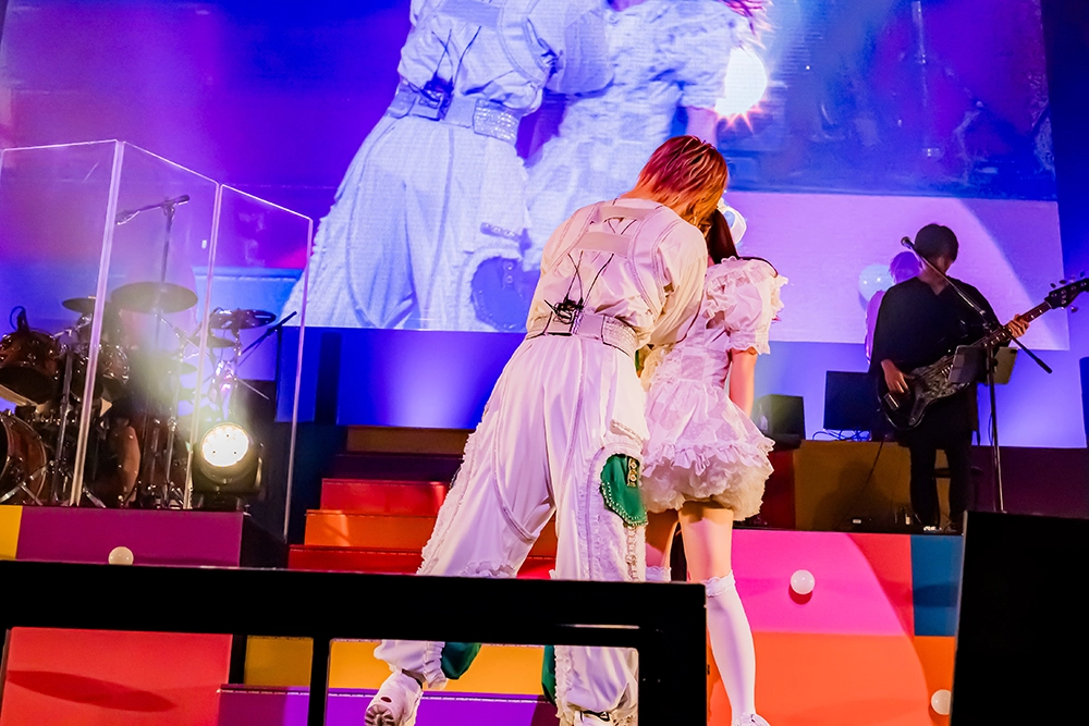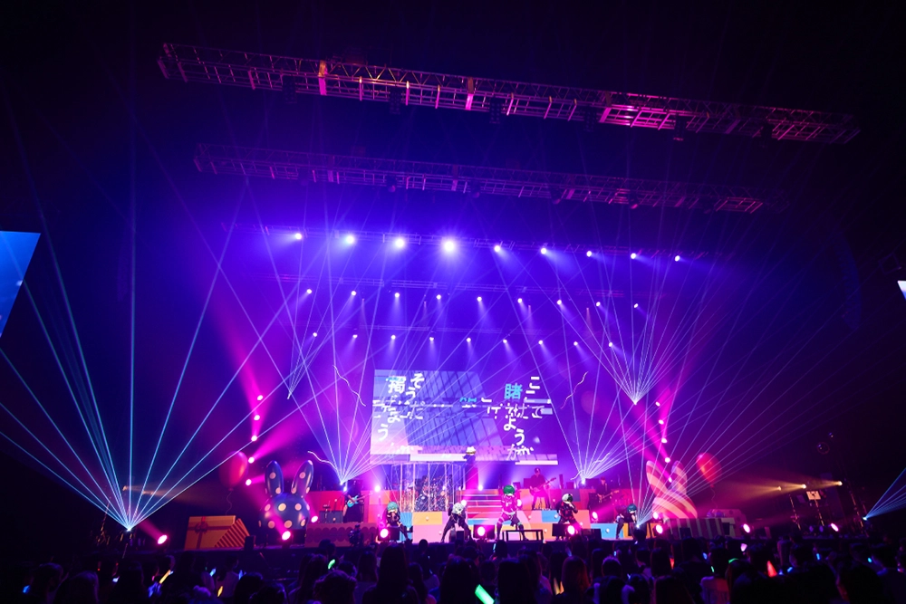 後方で火柱が立つ中で現れた歌い手のあーるん。、かんなちゃろ×ちぇるしー×ぽちいぬ×みぬた×ゆたくんによるスペシャルユニット、THEアイドルはDECO*27作の「ヒバナ」を歌うが、あーるんとみぬたのハイトーンボイスが響き渡る。MCゾーンではメンバー一人ずつ、お客さんに名前を呼んでもらうお願いするもぽちいぬは「犬」と呼んでほしいと懇願する変なヘキも(笑)。HoneyWorks作、めいちゃん歌唱の「小悪魔だってかまわない!」ではトロッコに移動しながら歌った。