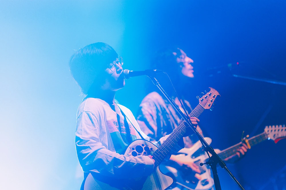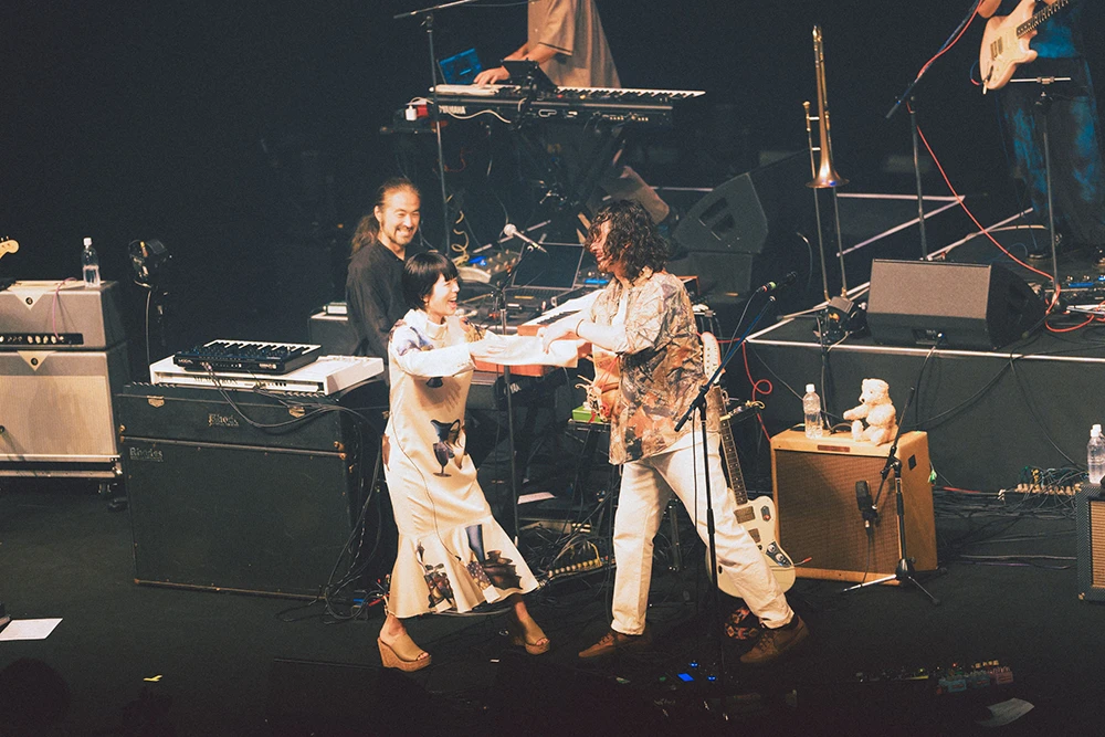 もう1曲は、今年1月にHedigan’sがリリースした「論理はロンリー」。三船雅也の声が、フェイクを付けたりユニゾンになったりハモったりしながら、YONCEの歌う主旋律に寄り添っていく。去り際にYONCE、自分の着ている「BEAR NIGHT 5」のTシャツをアピール。