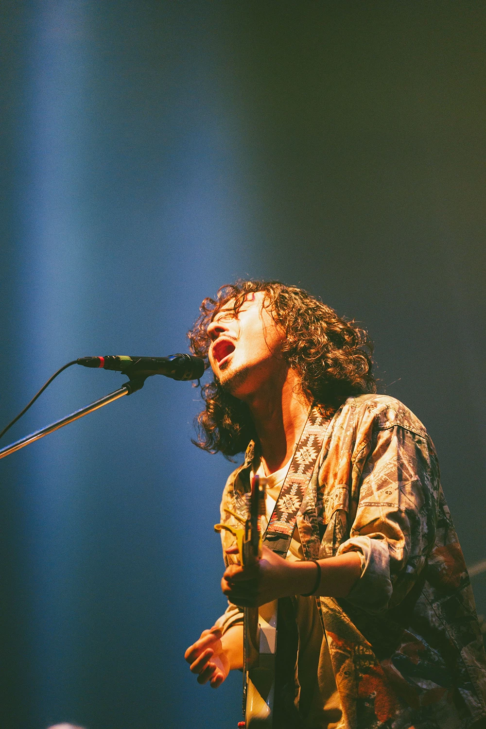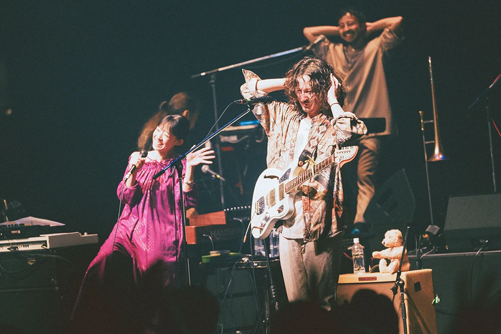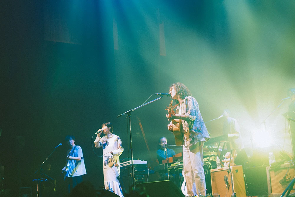 三船雅也が弾くエッジイかつ軽やかなギター・リフに、ハンドクラップでオーディエンスが追随した「BLOW」、オリジナル音源以上にダンサブルな「TAICO SONG」、三船雅也の歌と鍵盤とホーンが賛美歌のような響きを形作る「ひかりの螺旋」などの7曲が、前半のブロックで演奏される。