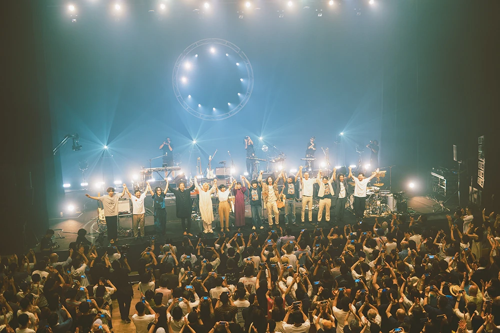 最後にメンバーを紹介し、ゲストの4人とDJの水野蒼生を呼び込み、14人で手をつないで一礼。5回目の『BEAR NIGHT』は終了した。
