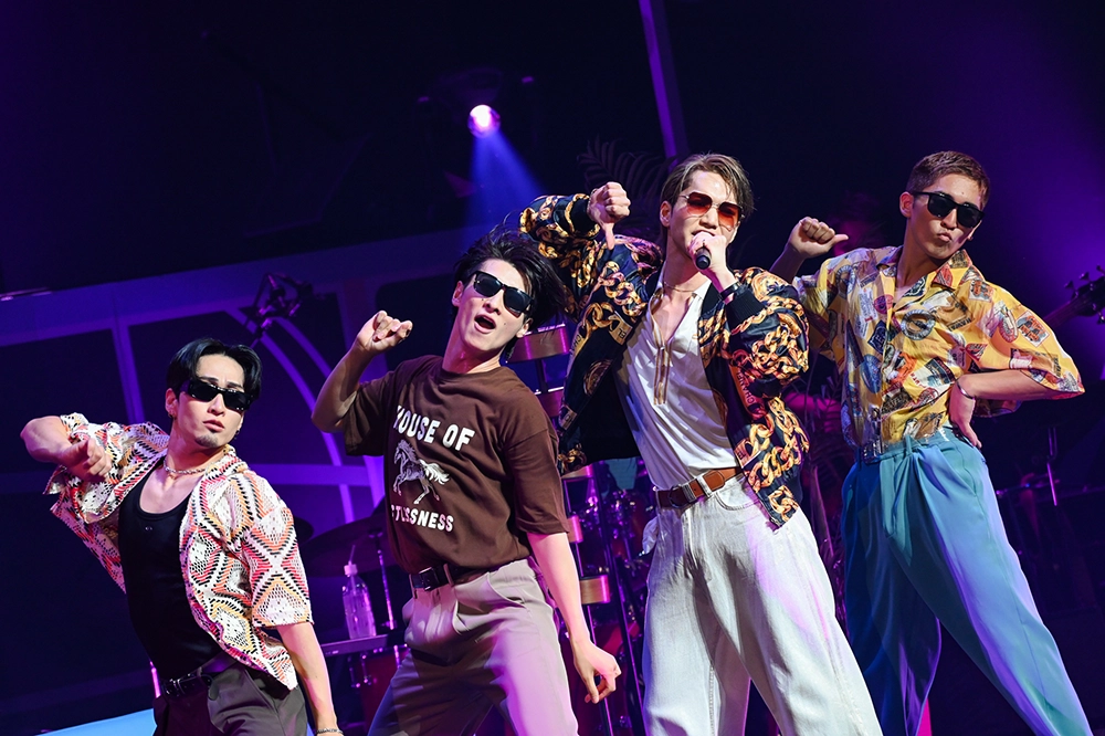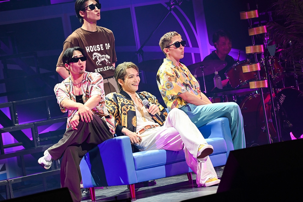 情熱的な闘牛士風の衣装から、ゴールドのチェーンがデザインされたブルゾンと白の上下の衣装に替え、ソファーに腰掛けて、軽やかに歌ったのは、ブルーノ・マーズの「The Lazy Song」。爽やかなアメリカ・西海岸の風を渋谷に吹かせた。客席の美しい口笛に「すごい!」と感激。昨日も来場していたファンからは「練習してきた!」と声も飛んでいた。