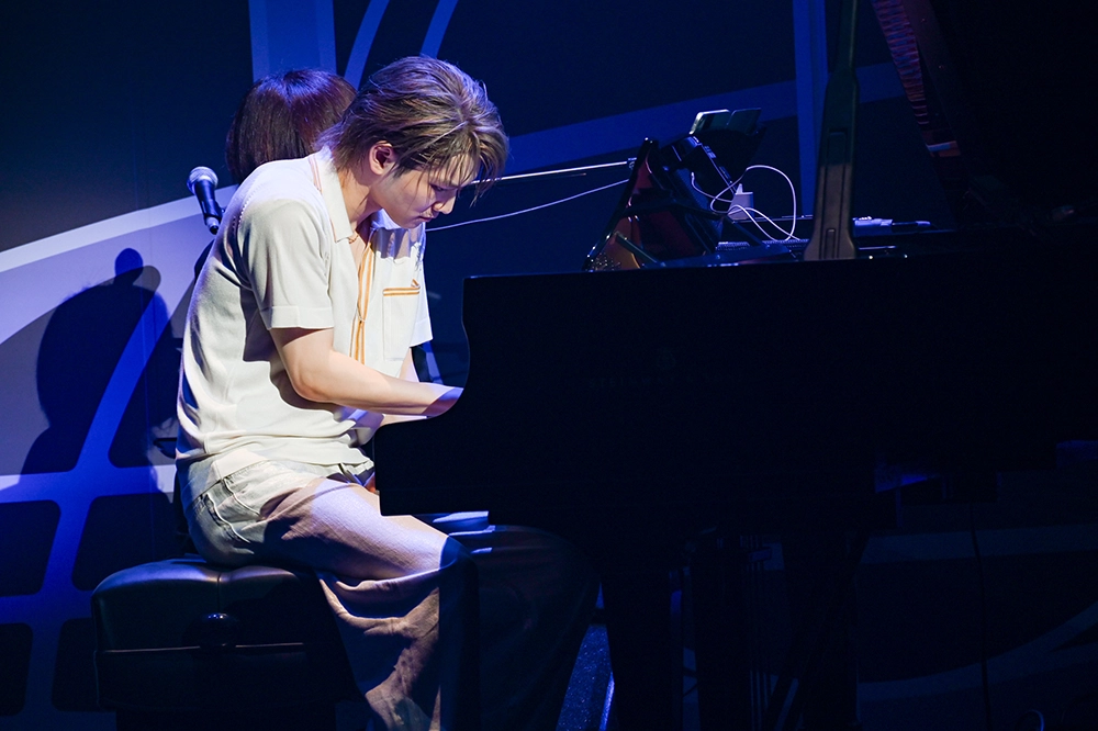 三重県愛もさく裂させたセクションを終えると、シンガー・ソングライターの海宝潤を招き入れ、海宝が三浦のために書き下ろした「cascade」で共演。海宝の柔らかなアコースティックギターにのせ、2人で声を響かせる場面もあった。海宝を送り出した三浦は、グランドピアノの前に腰掛けると、青い光の中でしっとりと演奏。そのまま下手に姿を消すと、バンドメンバーが「第89回アカデミー賞」で最多6部門に輝いたミュージカル映画『LA LA LAND』のメドレーで、会場を牽引していく。バイオリンを筆頭に、サクソフォン、チェロ、ギター、と交互に見せ場を作っていた。
