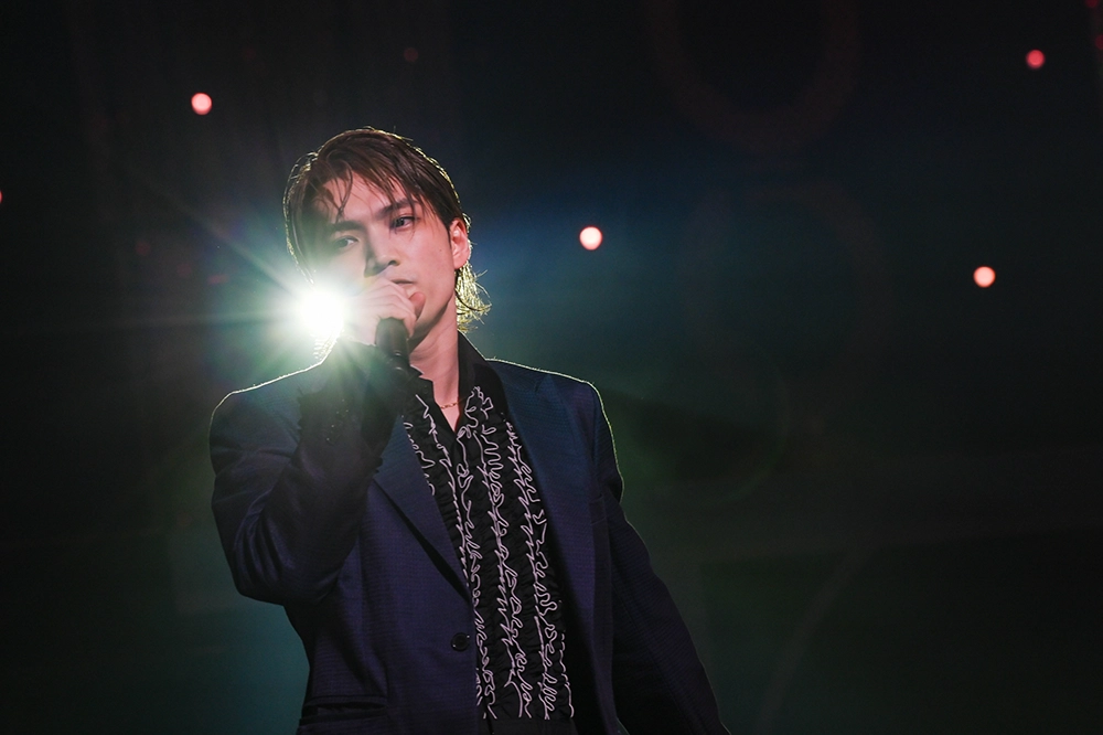 「みなさん、こんばんは」。冒頭から振り切った内容に、肩で息をする三浦。「昨日も思ったけど、早かったかな踊るの」と反省しつつ、白いペンライトを揺らして応える観客を見て笑顔。次の曲のためにファンに「口笛の練習をして」と無茶ぶりをしながら、スタッフが運んできたパネルの後ろに隠れると、公開生着替えの時間に。「生着替え、変よな」とぼやきつつ、ダンサーとともに口笛をレクチャー。「ここにいる2000人のお客さんとやったら気持ちいいんちゃうかな」と呼びかける際に、「2万人の」と言い間違え、ファンに冷やかされながらも口笛の練習を続けていた。