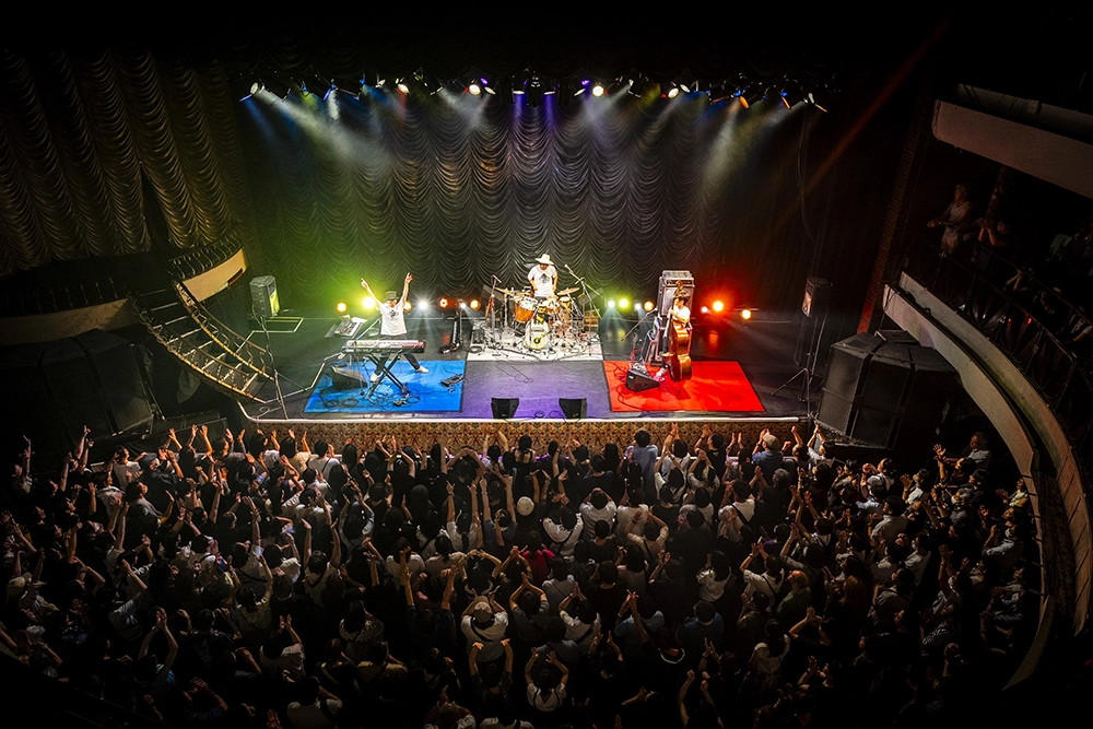 当初、4月6日(土)に大阪味園ユニバース、4月13日(土)に川崎CLUB CITTA’、6月30日(日)に東京渋谷クラブクアトロの3公演のみが予定されていたが、その反響は予想を上回り、7月15日(月祝)には大阪で再び公演を行い、今回、東京キネマ倶楽部でも熱気溢れるライブが開催された。
