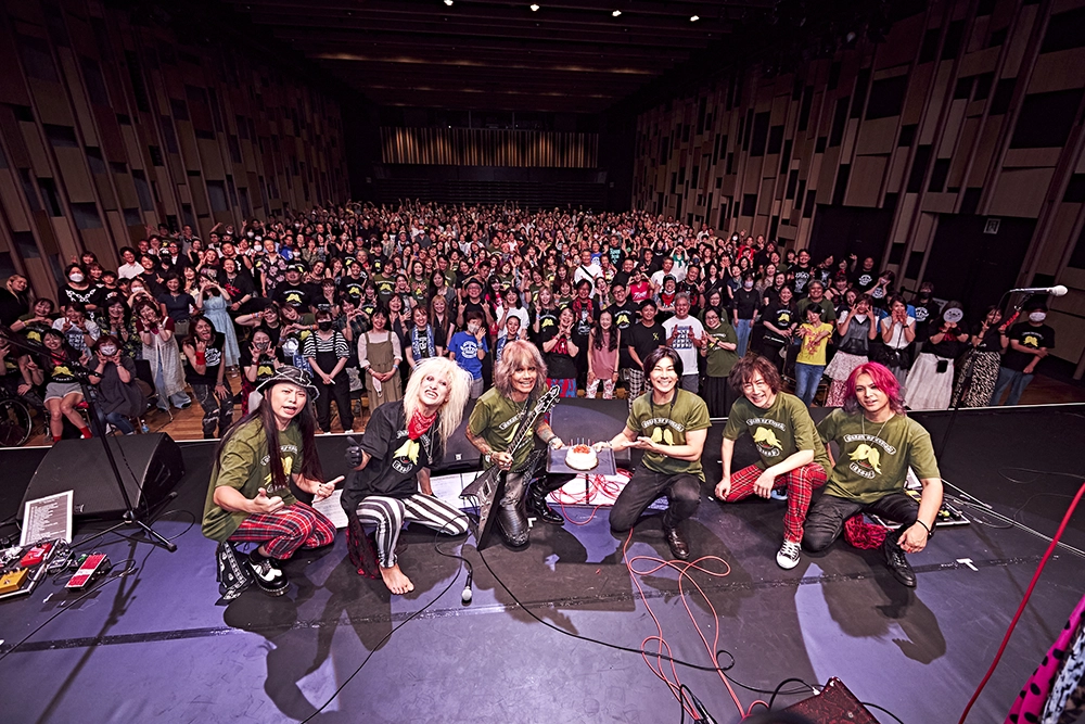 そして、最後にまたもとっておきのサプライズ。バースデーケーキを持った武田真治が再登場、「ハッピー・バースデー」の合唱と、観客をバックに記念撮影という、過去のバースデーライブではなかったシーンも実現した。素晴らしい夜を締めくくるラストナンバー「I’M GETTING’ BLUE」を演奏する5人、いや6人、いや観客をすべて入れた数百人。一体感という言葉が、これほど似合う瞬間はないと思う一体感。